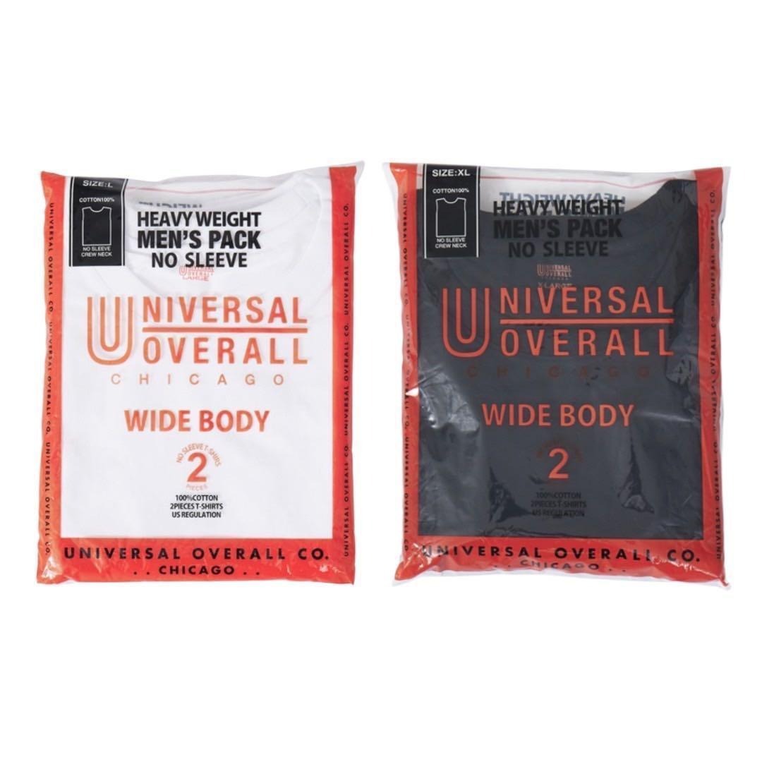 UNIVERSAL OVERALLのパック入りヘヴィーウェイト ノースリーブ Tシャツ。