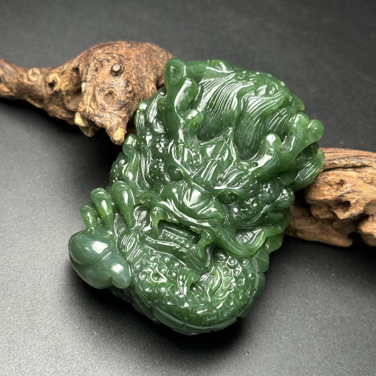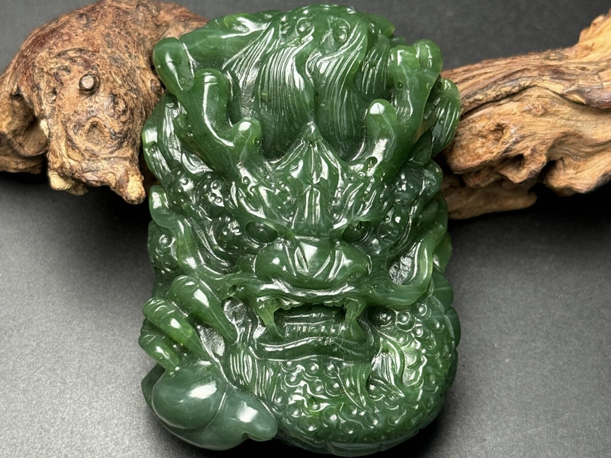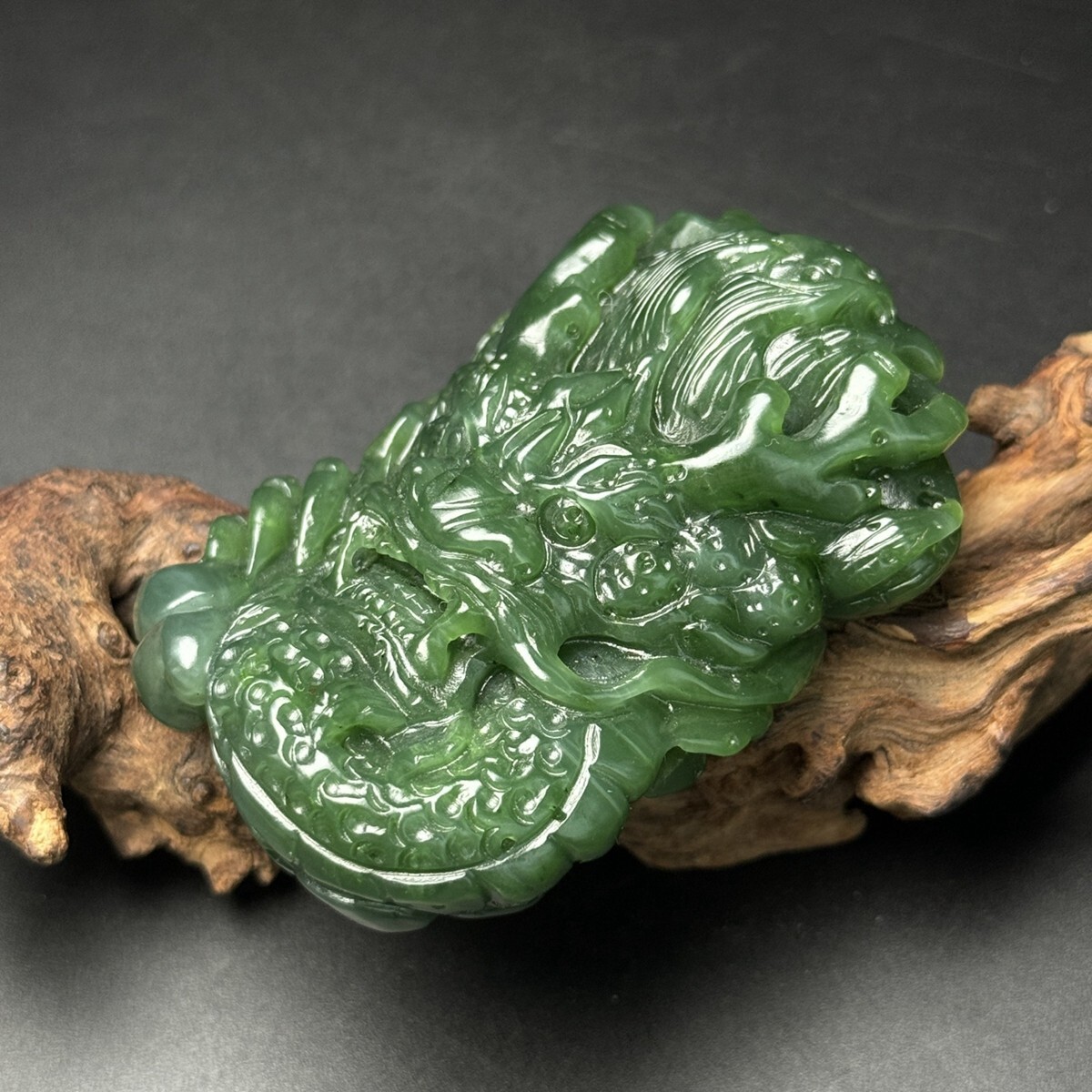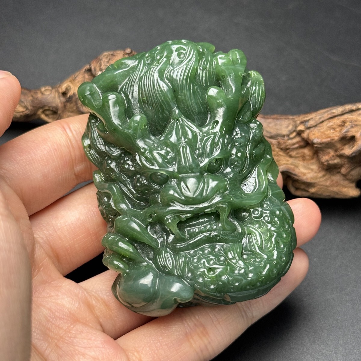 時代物 和田玉 碧玉彫 龍行天下 招財納福 盤龍【仁】極細工 手彫り 置物擺件 古賞物 蔵出