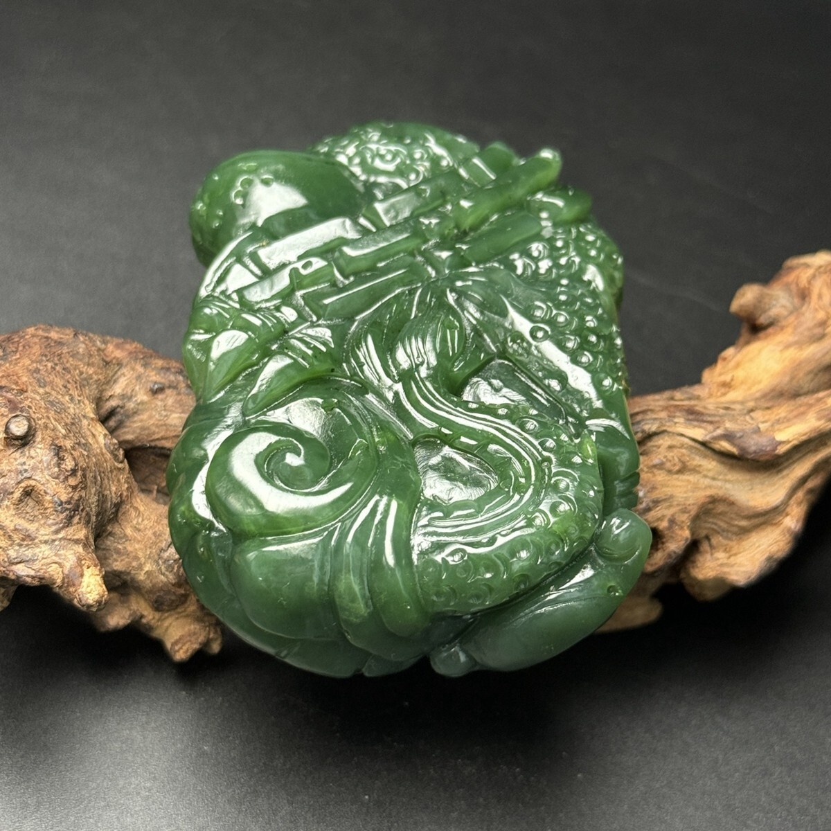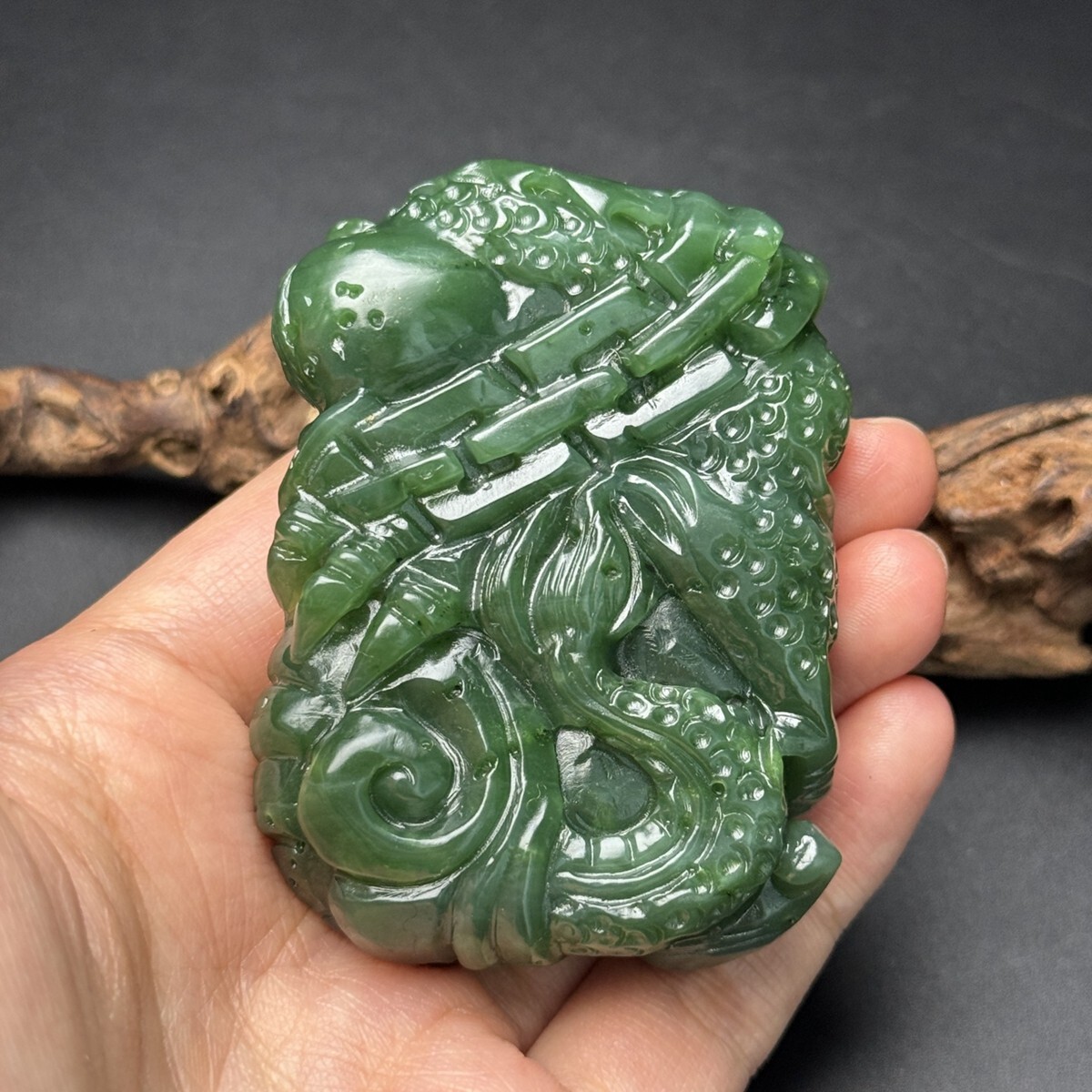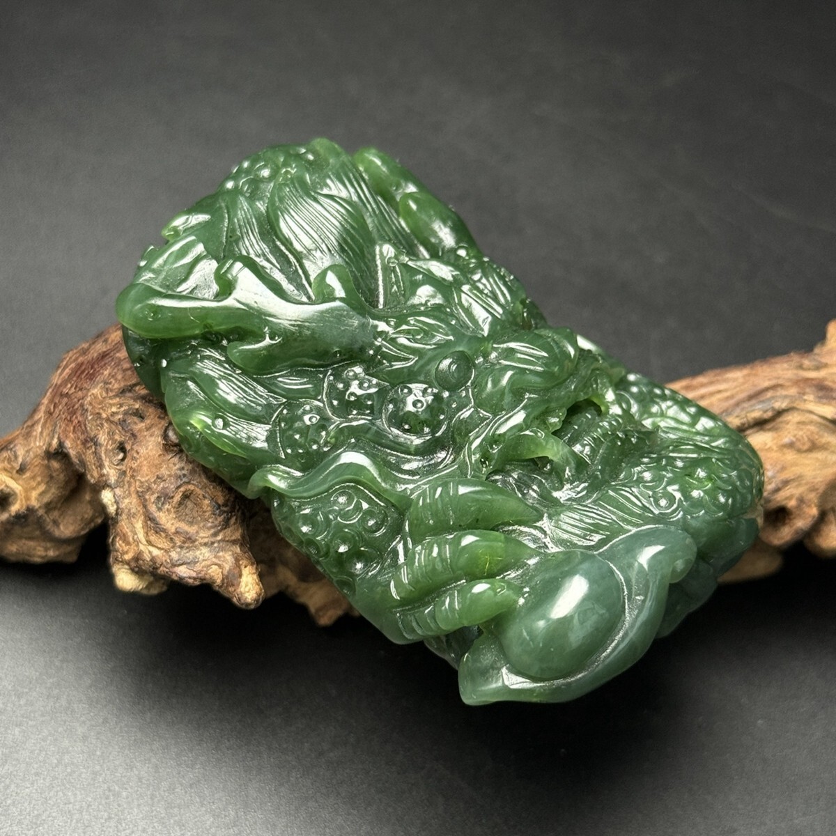 時代物 和田玉 碧玉彫 龍行天下 招財納福 盤龍【仁】極細工 手彫り 置物擺件 古賞物 蔵出
