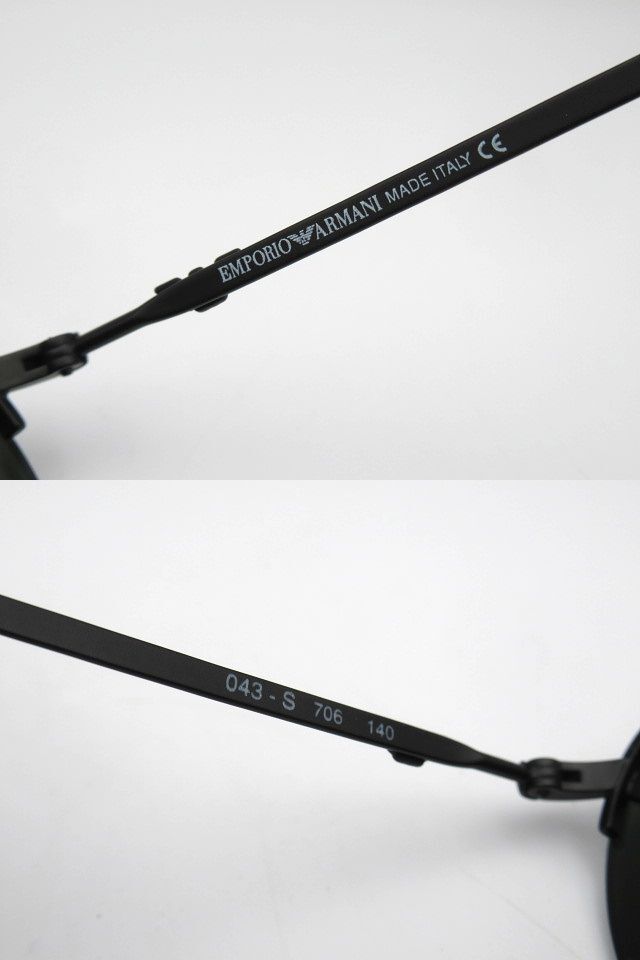 ◇EMPORIO ARMANI◇ ◇エンポリオアルマーニ◇ フレーム無し サングラス 043-S 706 140 ブラック系 中古 眼鏡 メガネ ケース無し 管理番号:42872/H4 *付属品* 無し ※画像に無いものはお付けしません。 *サイズ(約)* ・レンズ 縦 4cm×横 5cm ・ブリッジ幅 1.7cm ・テンプル 14cm ※素人採寸の為、誤差有。 【状態】 店舗買取品/保管品/中古になります。 擦れ・キズ・落としきれない細かな汚れ・塵の付着・ レンズに小傷・鼻当てパッドの黄ばみ・ レンズに向かって左側のテンプルの浮き・ガタツキ・ その他ダメージがあります。 詳しい状態は写真でご確認下さい。 画像に写りきらないダメージもあります。 ※商品の状態の説明はあくまで出品者の主観に基づいた説明です。 ※店舗保管品です。 ※新品の様な完璧な状態では御座いません。 ※ご理解頂ける方のご入札をお願い致します。 ご入札前に必ず全文をお読みになり、 お客様が十分にご納得された上でのご入札、 ノークレーム・ノーリターンでお願い致します。 入札の取消は行っておりませんのでご注意下さい。 (ご入札された時点で同意頂いたものとします) ※画像のものがすべてになります。 ※店舗保管品の為、多少のスレキズ等ある場合が御座います。 ※専門知識が無いため質問にお答えできない場合が御座います。 ※素人検品・撮影の為写真に写り切らない汚れ・キズがある場合が御座います。 ※新品の様な100%完璧な状態では御座いません。 ※念入りに検品しておりますが見落としがある場合が御座います。 ※神経質な方、完璧をお求めの方は入札をお控え下さい。 ※御理解頂ける方のご入札をお願い致します。 ※当店はまとめてお取引には対応致しません。 全て単品でのお取引となります。 ※同梱は行っておりません。 ※商品管理上、取り置きは致しませんのでご了承下さい。 | |||
