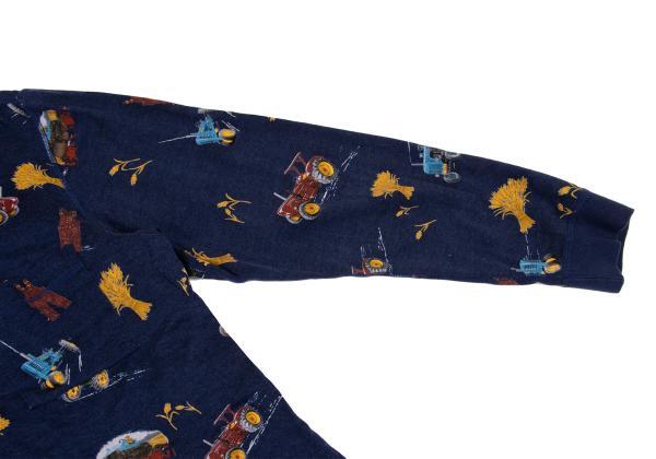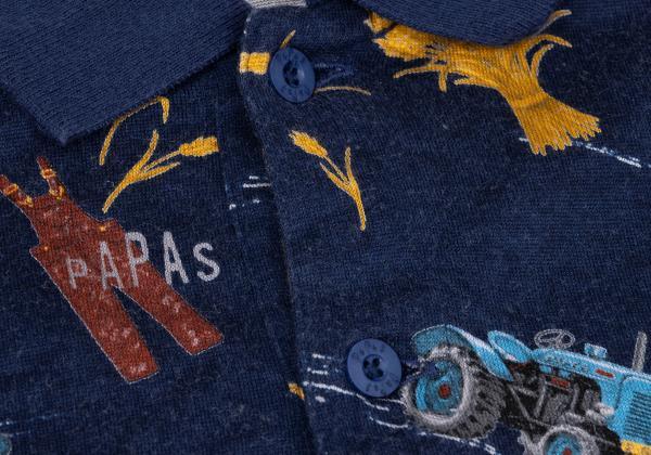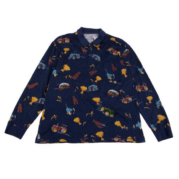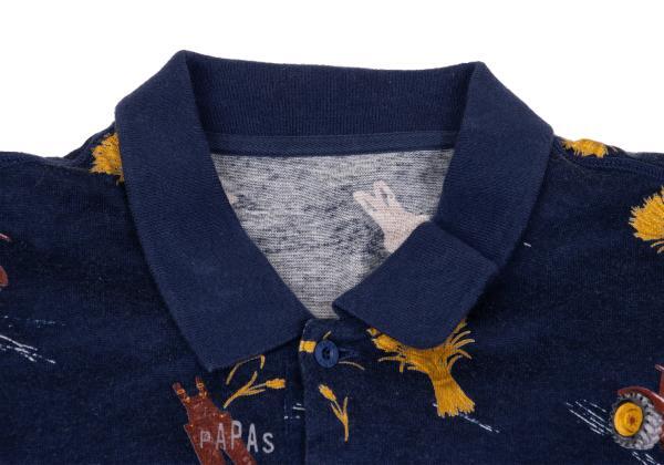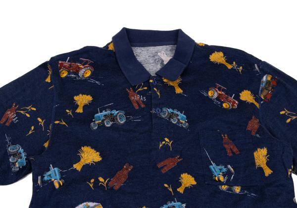 パパスPapas コットントラクタープリントポロシャツ 紺M位 |