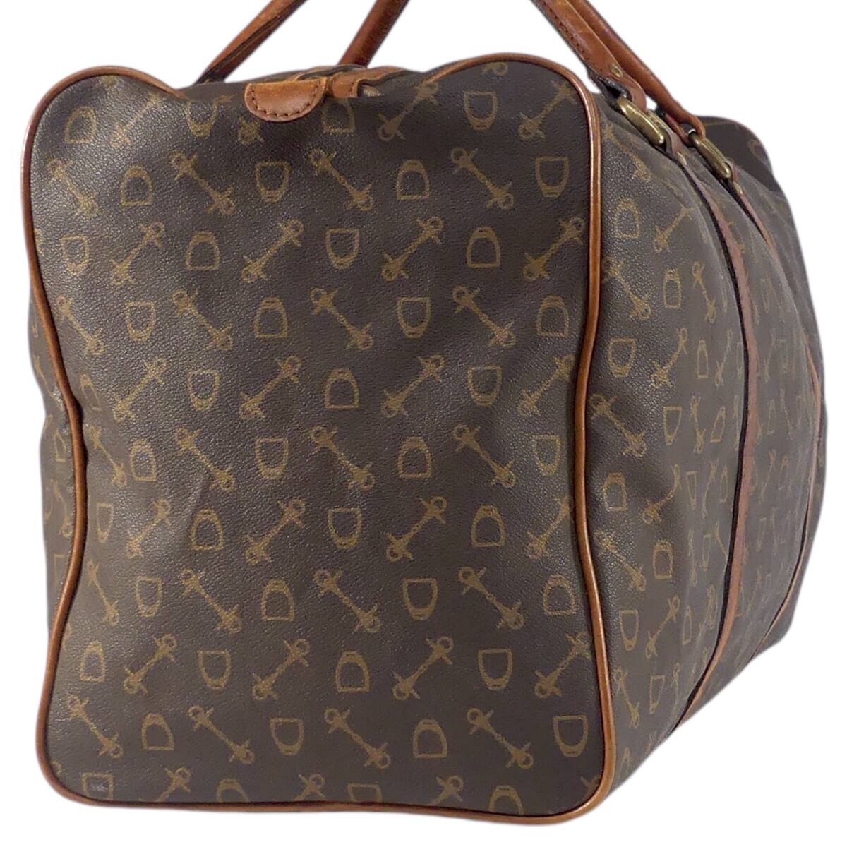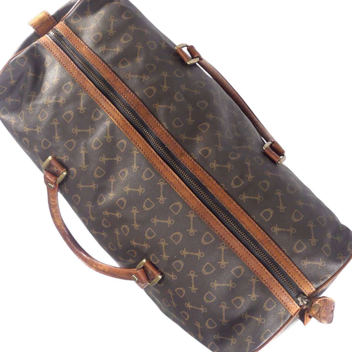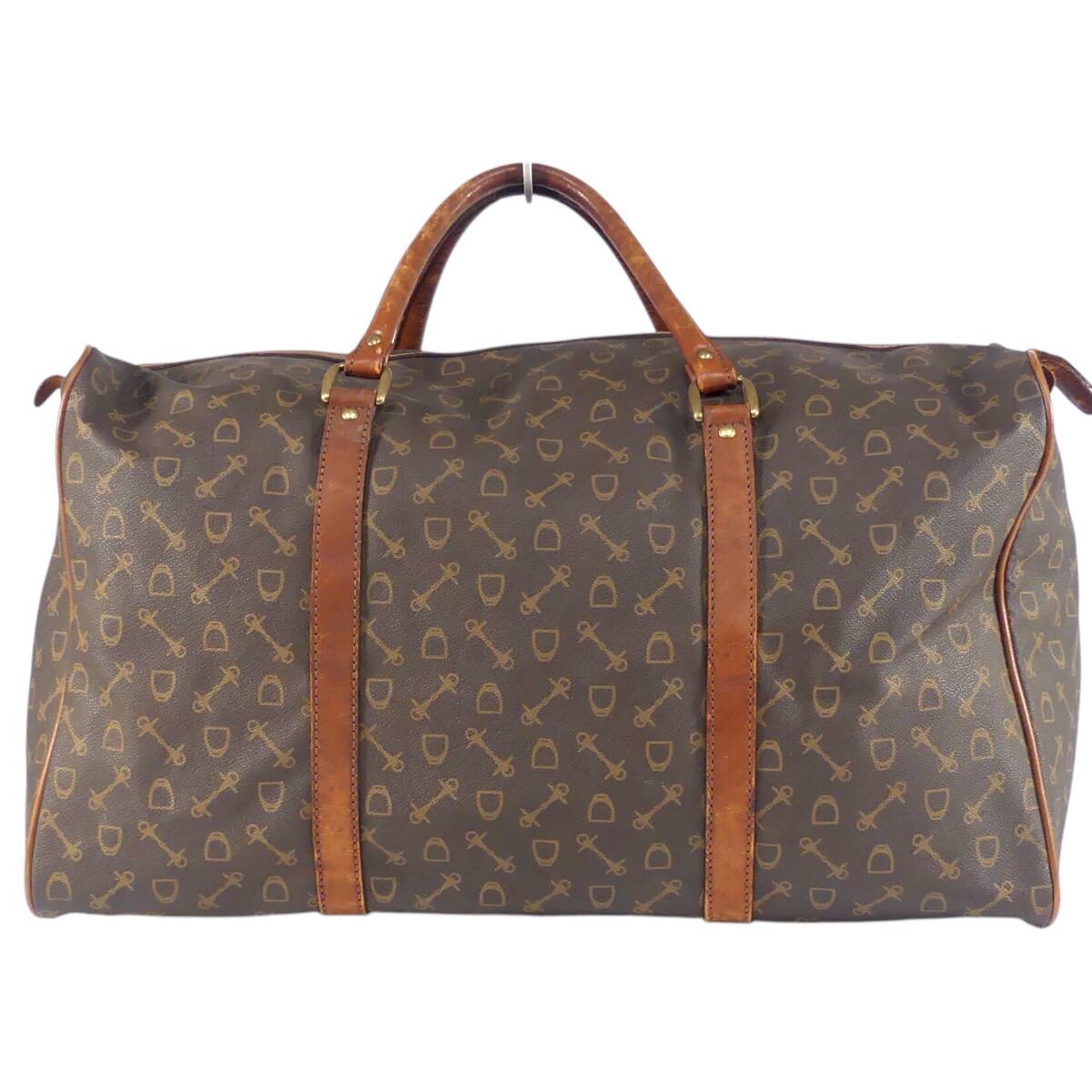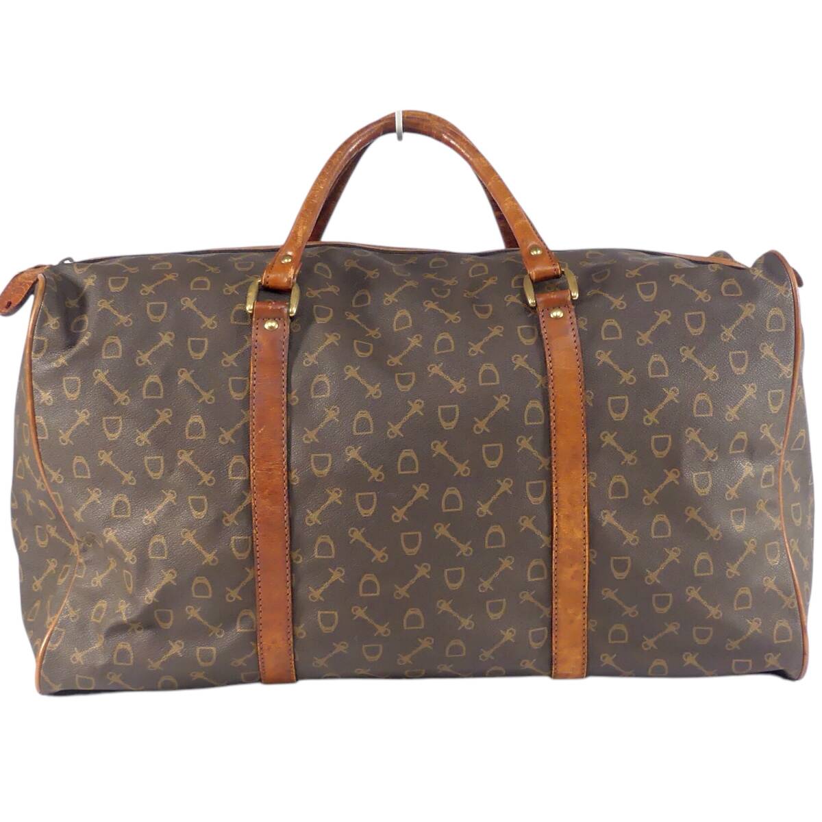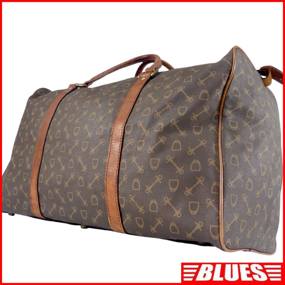 即決★N.B.★レザーコンビボストンバッグ ド 茶 総柄 本革 トラベルバッグ 本皮 旅行 カバン 出張 鞄