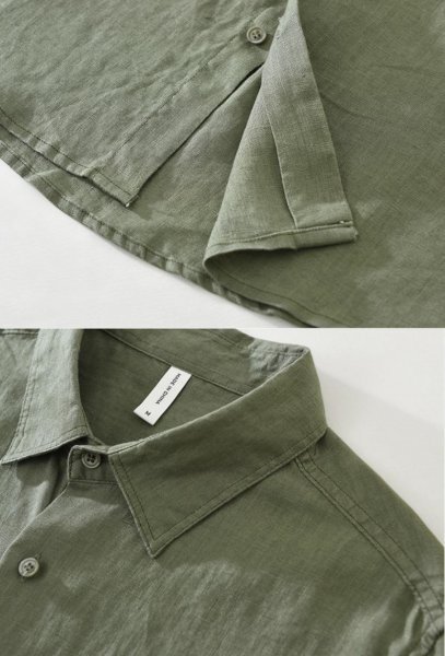 新品★未使用 リネンシャツ 亜麻100% アロハシャツ 長袖シャツ メンズ シャツ トレンド トップス【M7627】グリーン 2XL