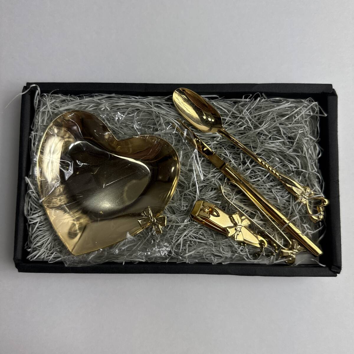 No. 240 ハート型皿 ゴールドカトラリー セット | ||