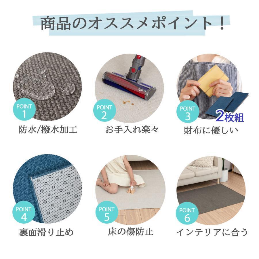 防水 撥水 マット アイボリ- L サイズ  2枚入り 89×119cm ペットマット  滑り止め  ラグ  はっ水 カーペット