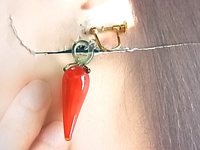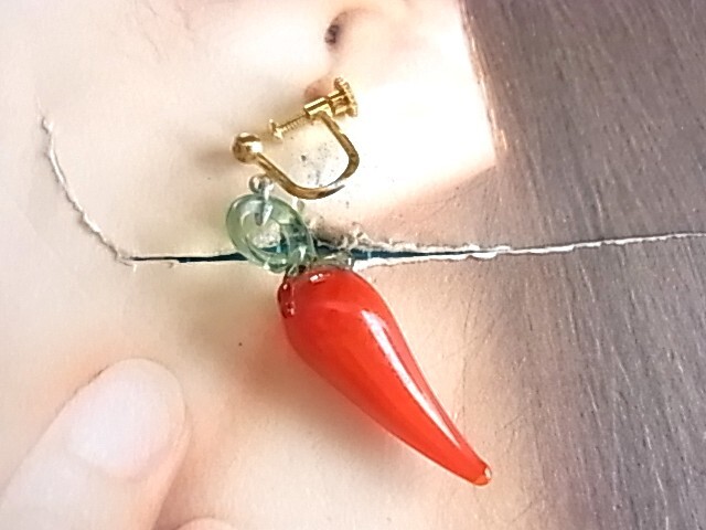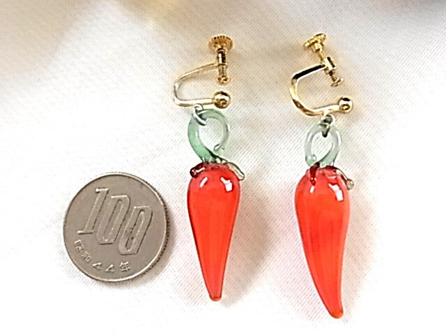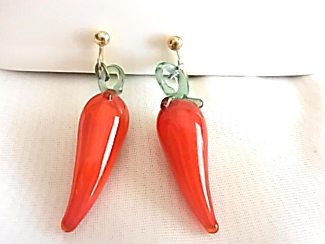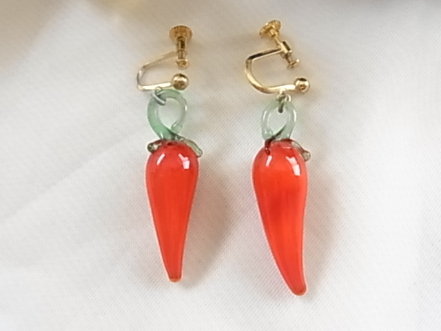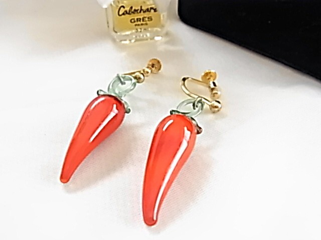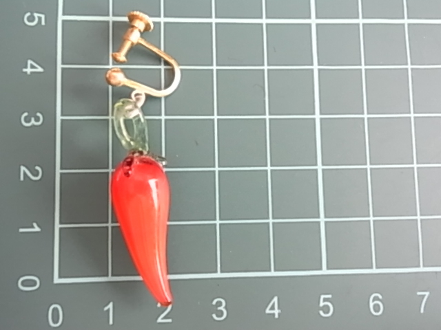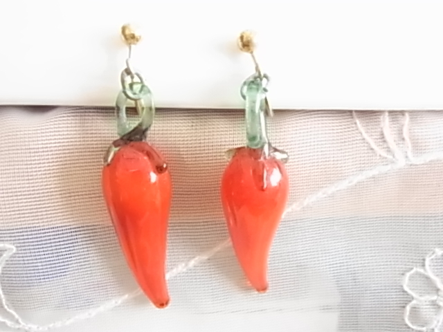 ビンテージ/ヴィンテージ 赤トウガラシのモチーフ 唐辛子デザイン 焼き物系 ガラス? 個性的デザイン レトロお洒落感 イヤリング■
