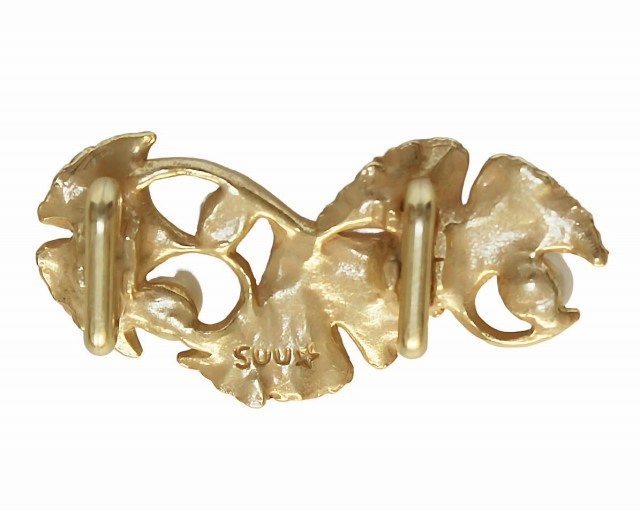 | J0318-10 福利礼羅 こちらは・「数」・「SUU」ブランドの帯び止めです。 希少ないちょう(銀杏)の帯〆です。 ひらひらと舞い散るイチョウの葉を曲線にしてきれいなシルエットとなり銀杏をイメ-ジしたパ-ルが上品さを見せてくれています。 シンプルな色合いなのでコ-ディネ-トしやすい帯〆です。 お好みの着物に合わせたり 気分を変えてワンポイントにしてみたり またプレゼントとしても喜んでいただけるでしょう。(ラッピングお受けできません) ぜひ この機会に「SUU」のコレクションをお手元に取ってみませんか。◎ | ||||