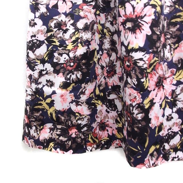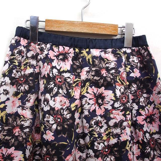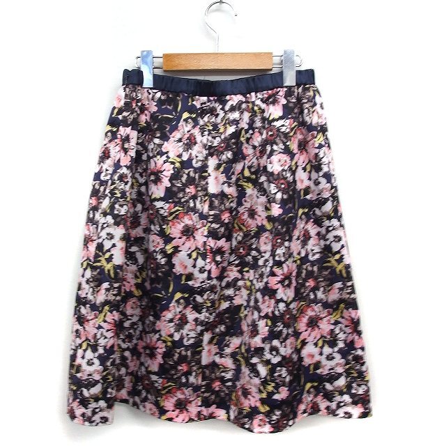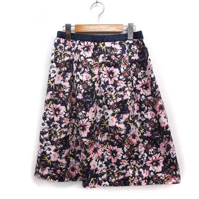 スーナウーナ Sunauna 花柄 フレアスカート ひざ丈 38 ネイビー 紺 /FT28 レディース
