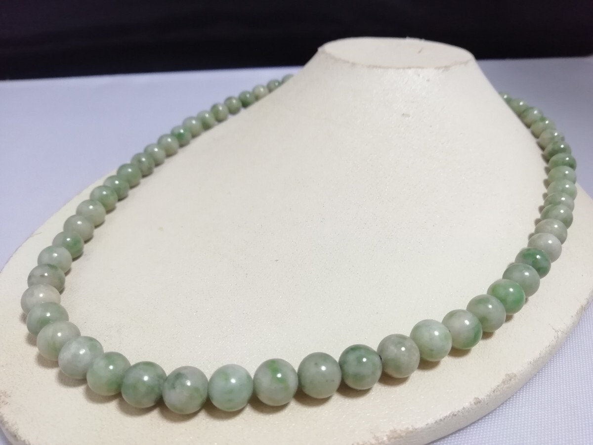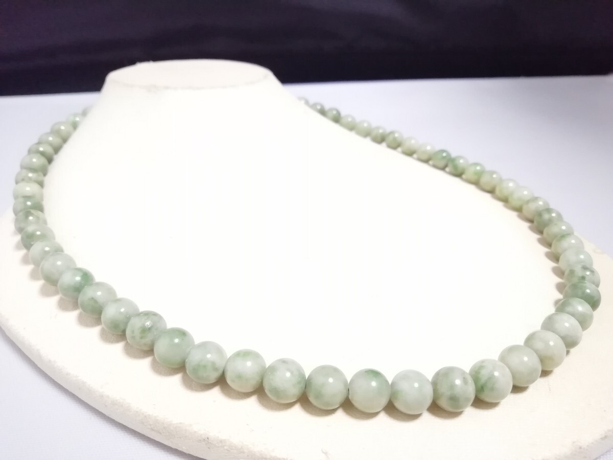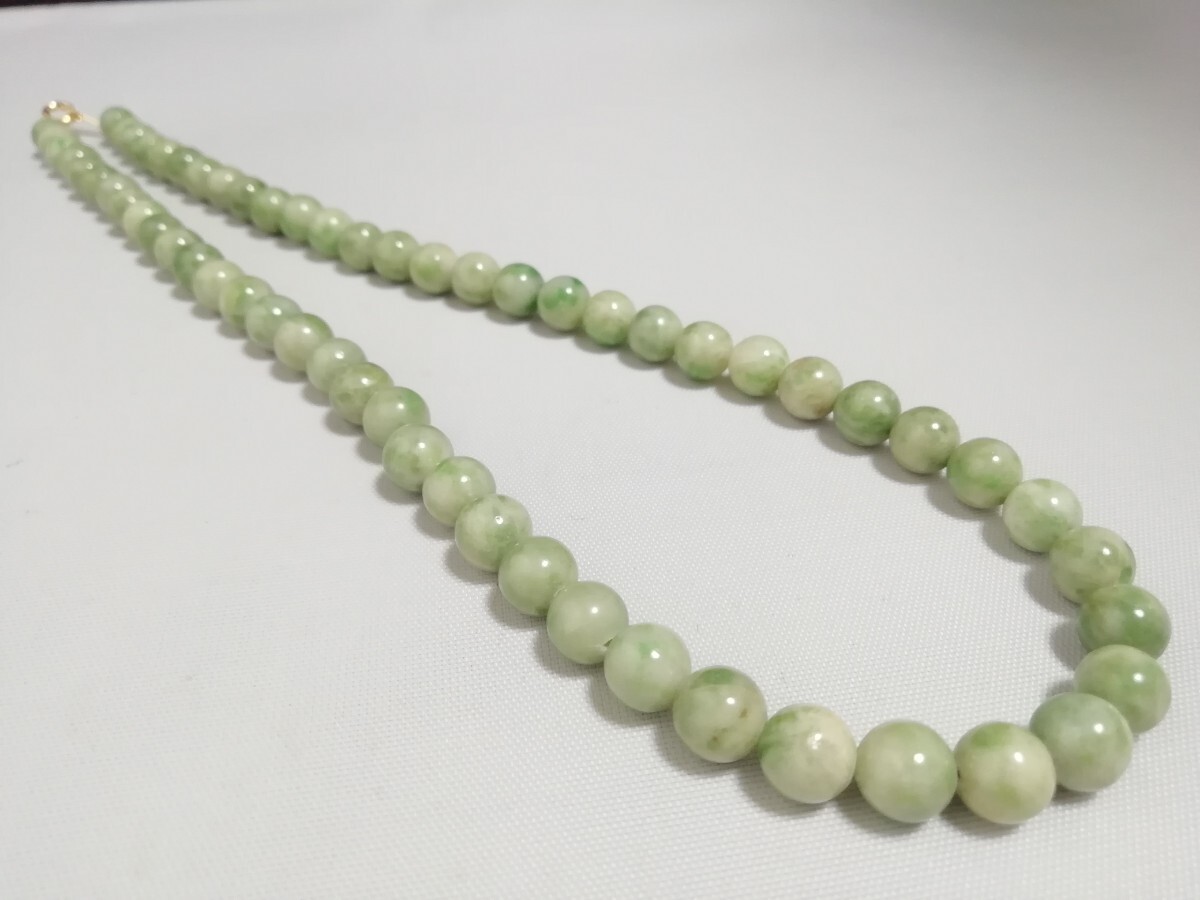 ミャンマー天然シンプルディザイン丸玉翡翠ロングネックレス
