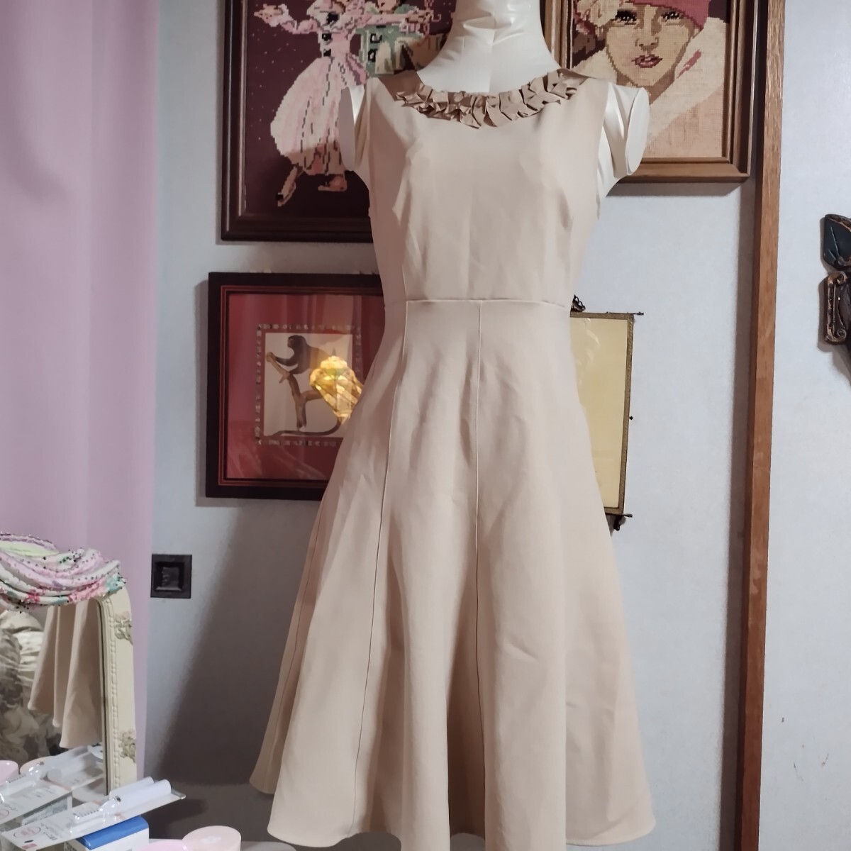 パオラフラーニのフリル装飾ノースリーブフレアひざ丈ワンピースになります。