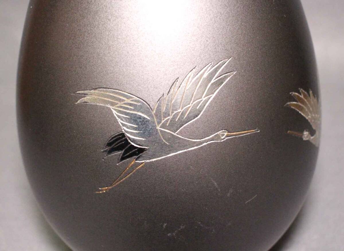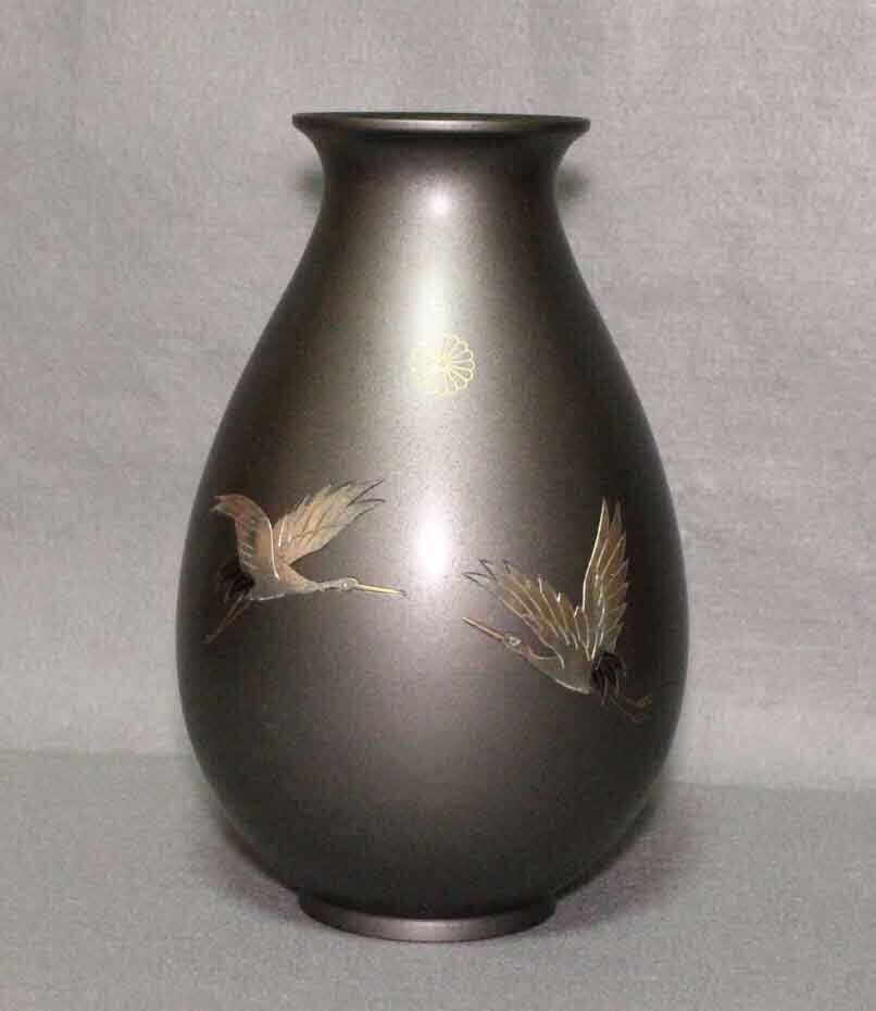 [銅花器g07]★花瓶 鶴図 菊御紋 22cm★双鶴文 菊花文 花生 壺 VASE