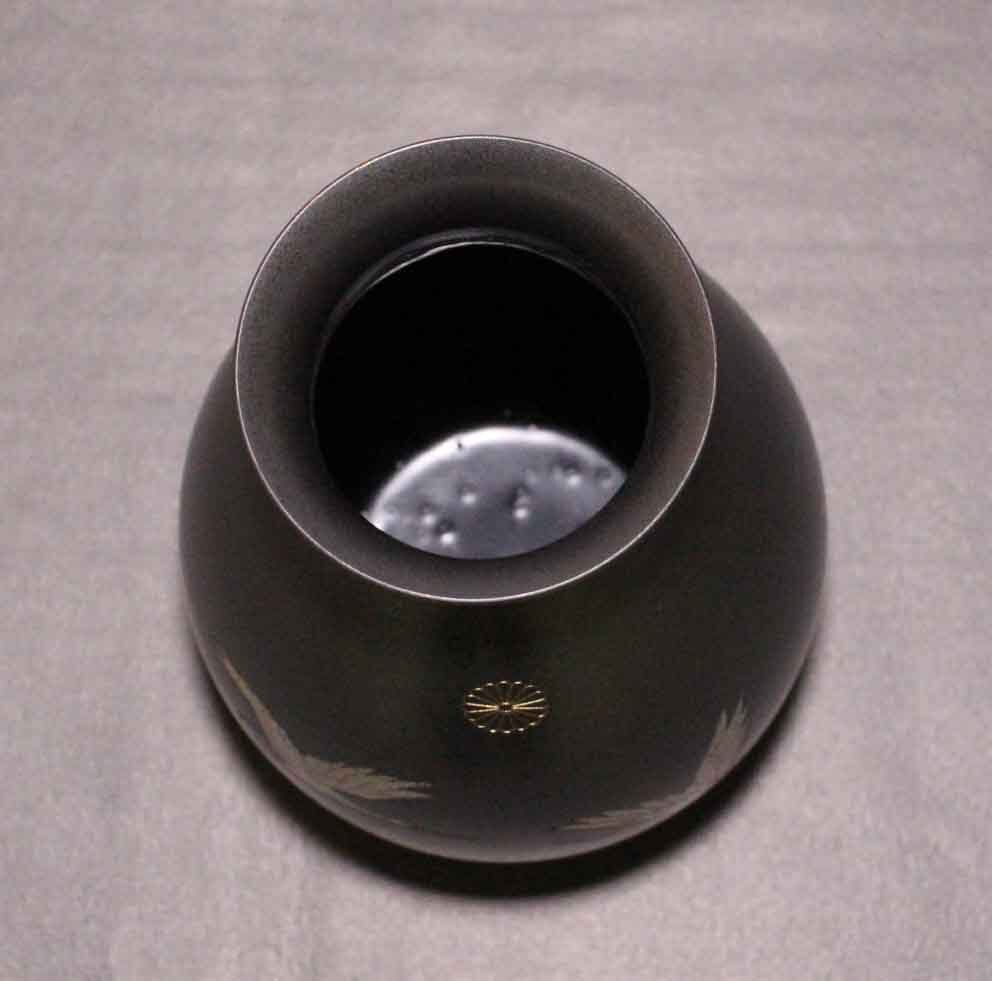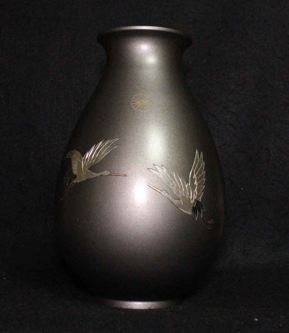 [銅花器g07]★花瓶 鶴図 菊御紋 22cm★双鶴文 菊花文 花生 壺 VASE crane