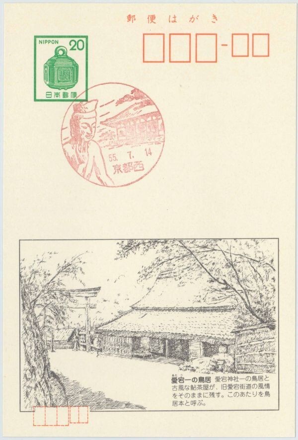 風景印☆平日☆京都・京都西・S55.7.14・絵入り2