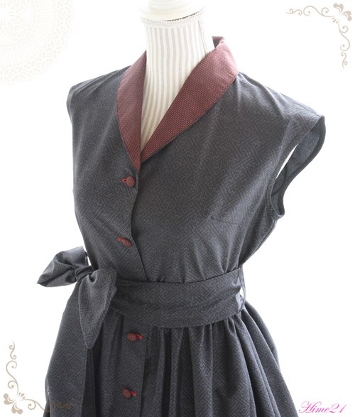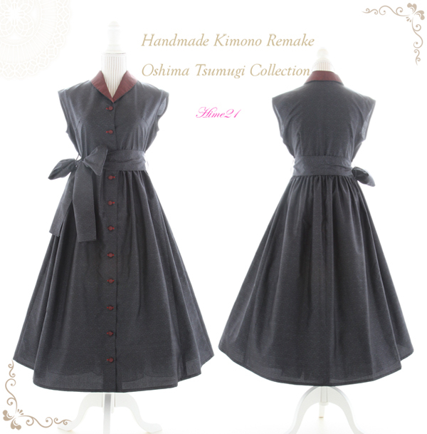 上品で華麗なフォルム、大島紬を1950年代風に仕立てました。