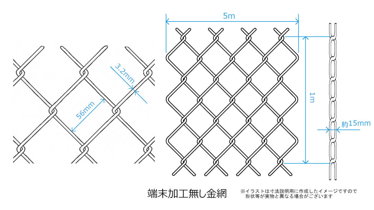 幅1m×5m「(無)端末加工」「線径3.2mm」「網目大きさ56mm」ネットフェンス 菱形金網 獣害対策 DIY 外構 アメリカンフェンス
