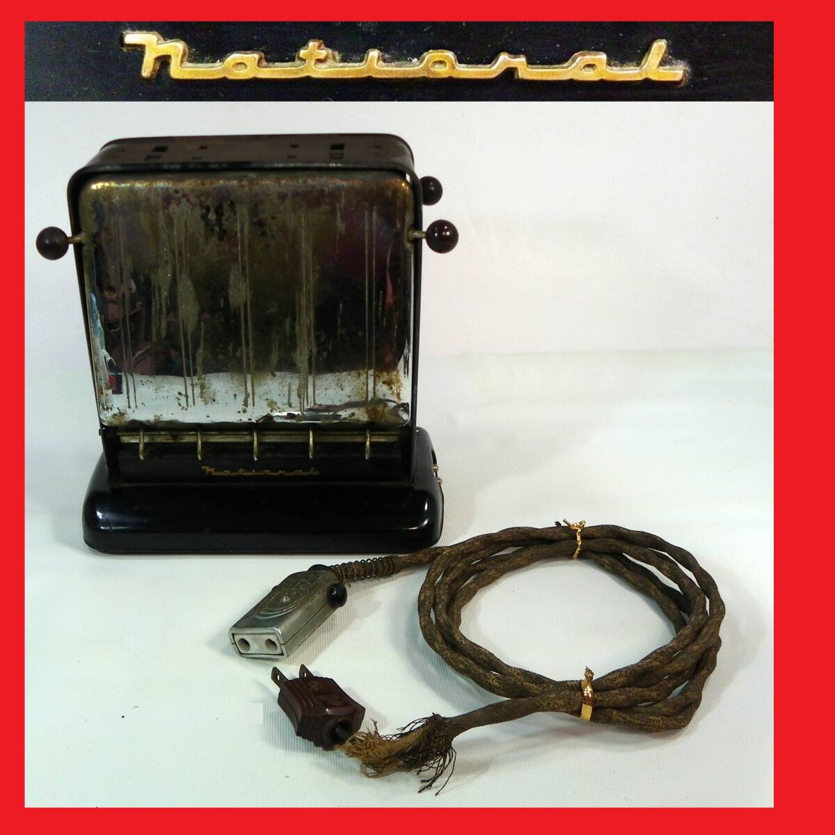 ゆうパック.80サイズ送料記載済み ナショナル バタフライ 初期.トースター 動作OK 使用感有 ナショナル.初期.パン焼き(赤枠.樂多我)
