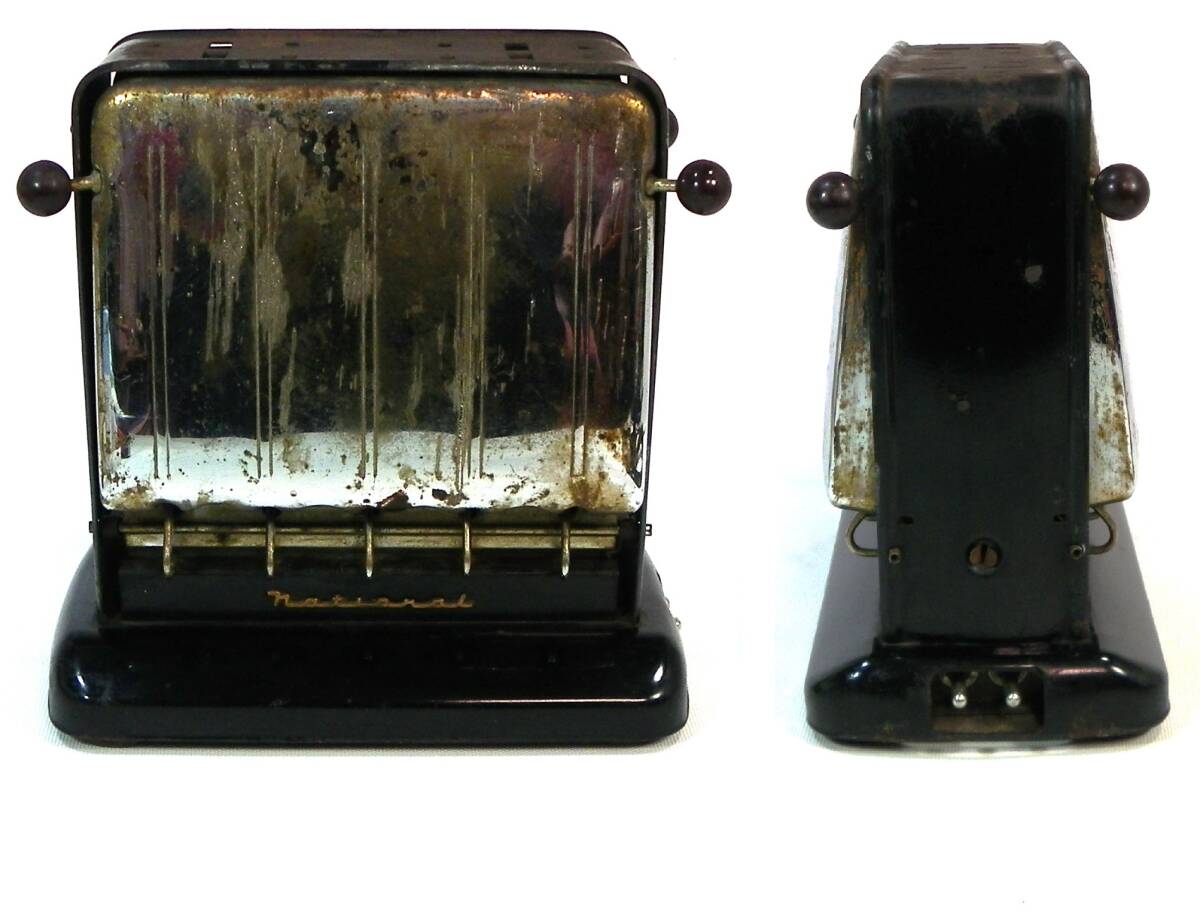 ナショナル バタフライ 初期.トースター 動作OK 古い物ですので写真の様な使用傷、汚れ、その他等御座いますので、神経質の方は入札お断り致します。これでパンを焼いたことが御座いませんので、完璧を求める方、又細かな事の気になる方は、御自分の眼で確かめて買える所をお薦め致します。