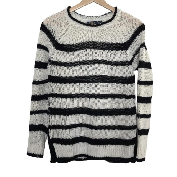 ポロラルフローレン POLObyRalphLauren 長袖セーター/ニット サイズXXS XS - 白×黒 レディース クルーネック/ボーダー トップス