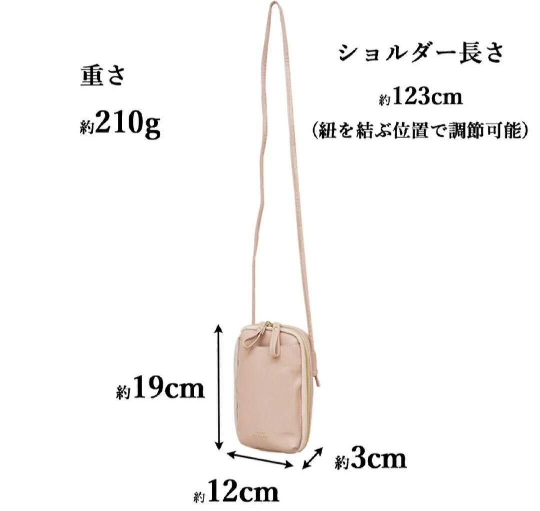 コンパクトサイズで、お財布やスマートフォンが一緒に入るミニショルダーバッグ。
