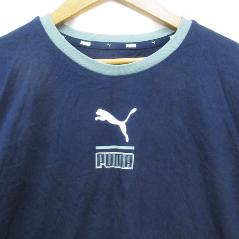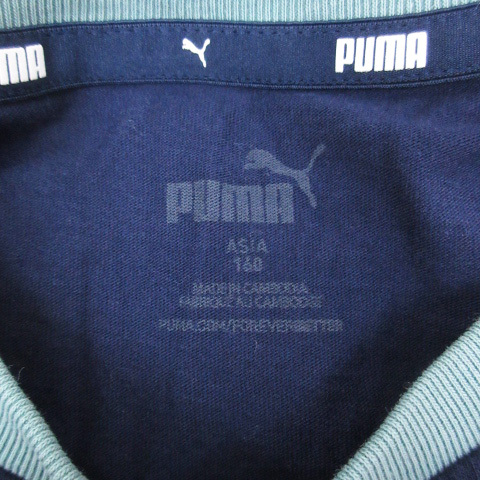 プーマ PUMA Tシャツ カットソー 長袖 クルーネック ロゴプリント 160 紺 ミントグリーン ネイビー /FF35 男の子 キッズ