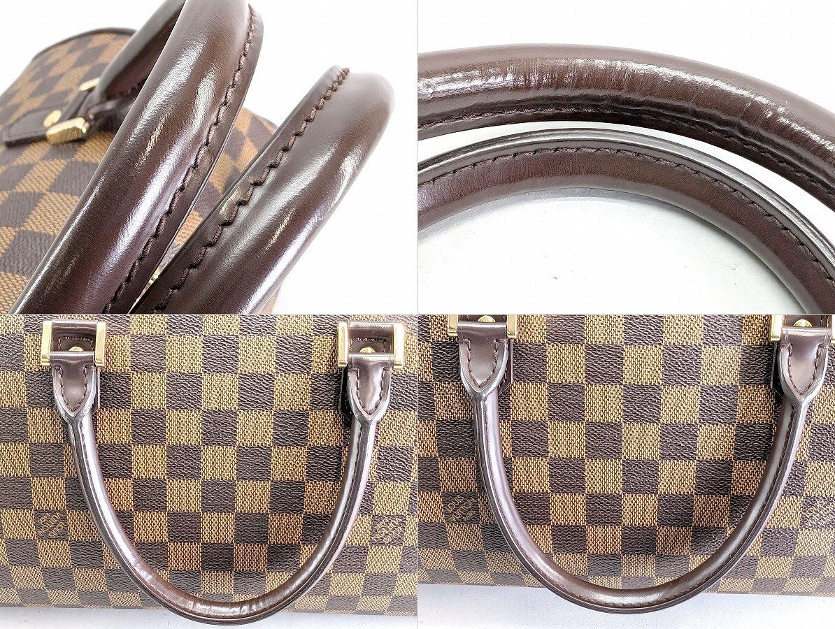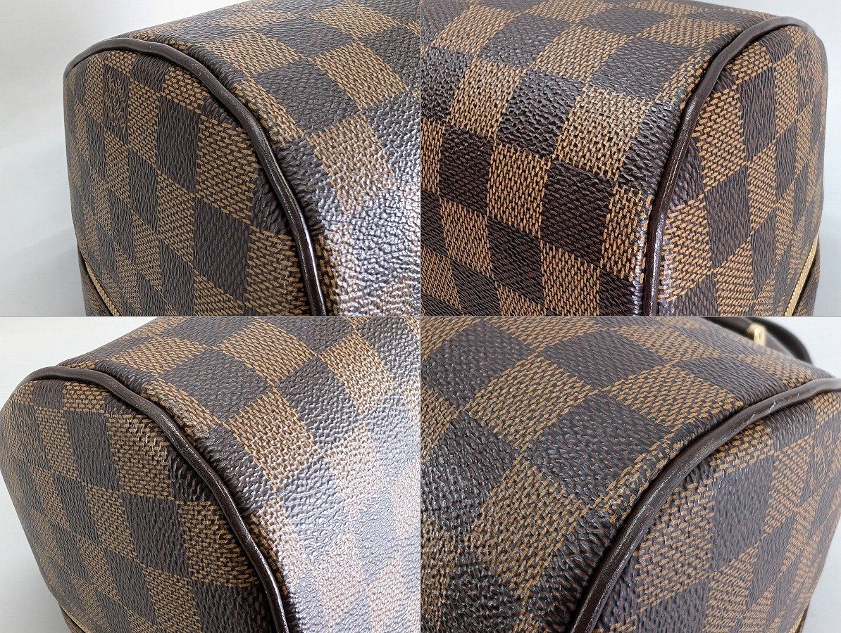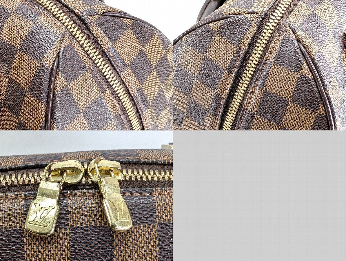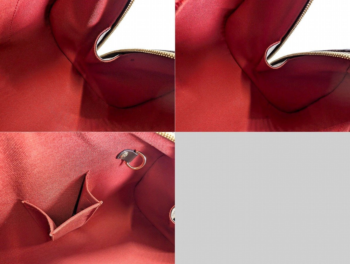 外観に強い使用感は無く、きれいな状態といえますが、表面各所やそれぞれの角にごく小さなスレがあります。 ハンドルなど皮革部品の一部にシワがあります。 ファスナー金具など、金属部品のくすみ、メッキ剥がれがあります。 内装生地の一部に小さな黒ずみ汚れがあります。 写真や記載にない不具合があるかもしれませんが、現状渡しにてご容赦ください。 あくまで中古品となります。 完全な状態をお求めの方、細かい点が気になる方はご入札をお控えください。 ノークレーム・ノーリターンでお願いいたします。 |