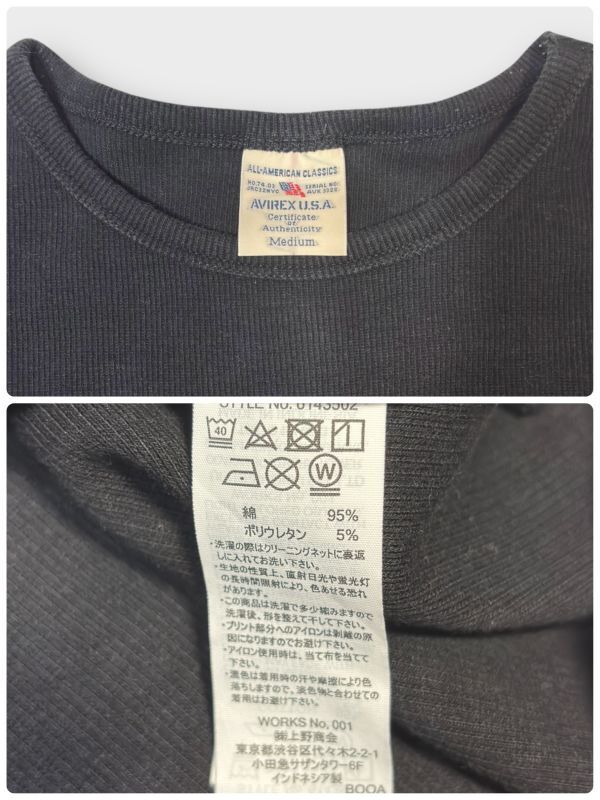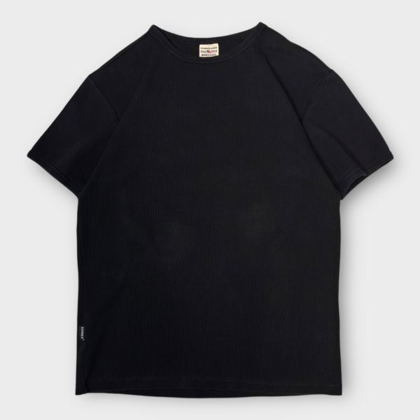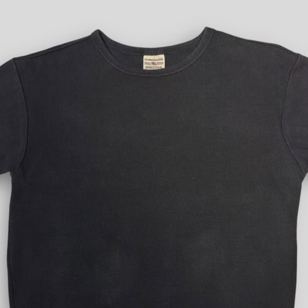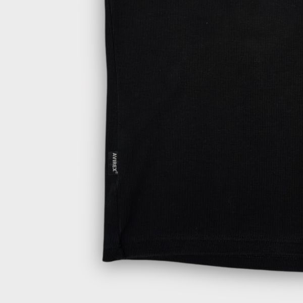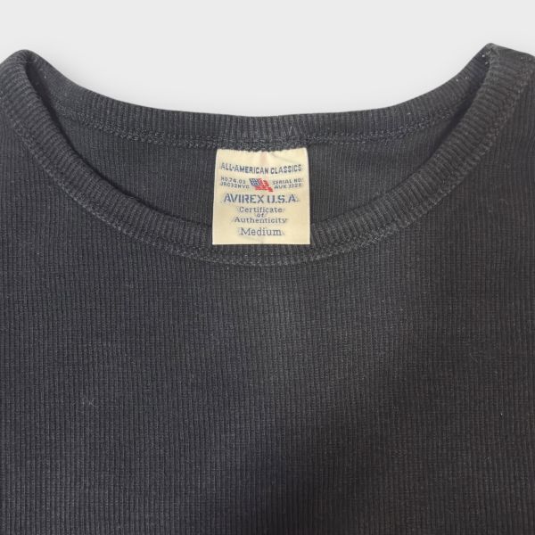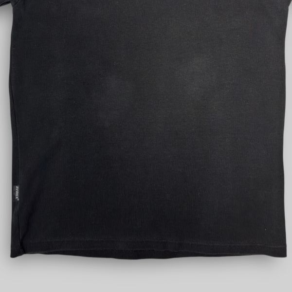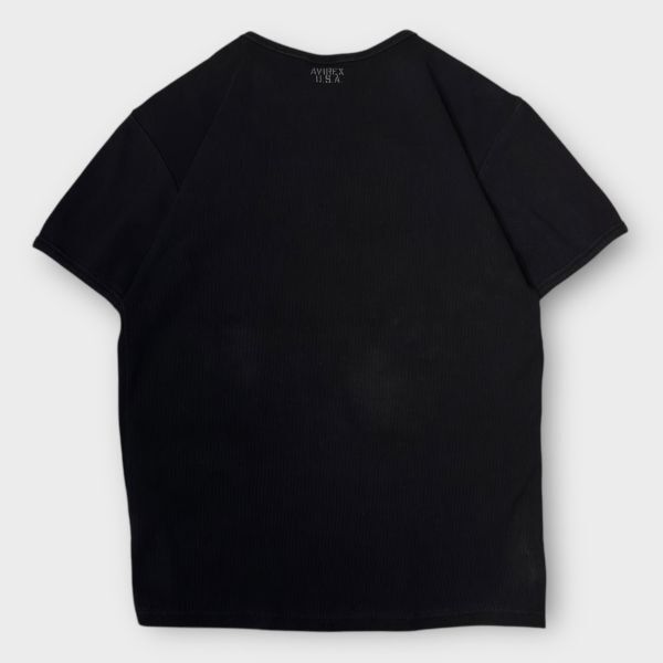 ★AVIREX★リブ編み★半袖Tシャツ クルーネック USA sizeM ブラック系 ピスネーム アヴィレックス 古着 クリーニング プレス済み ネコポス可 sn279