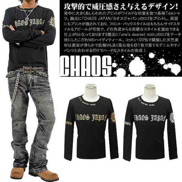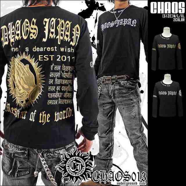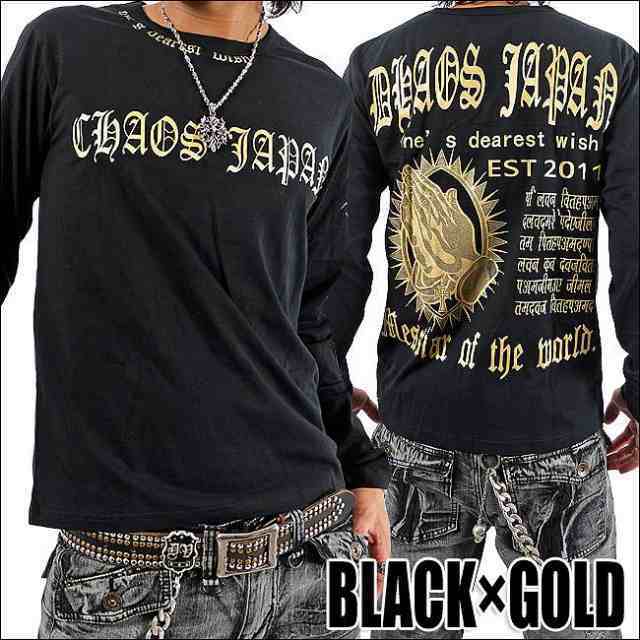 CHAOS JAPAN プレイハンド英字プリント ロンT 長袖Tシャツ ブラック×ゴールド ch-ry-1004新品ブラック×ゴールド M