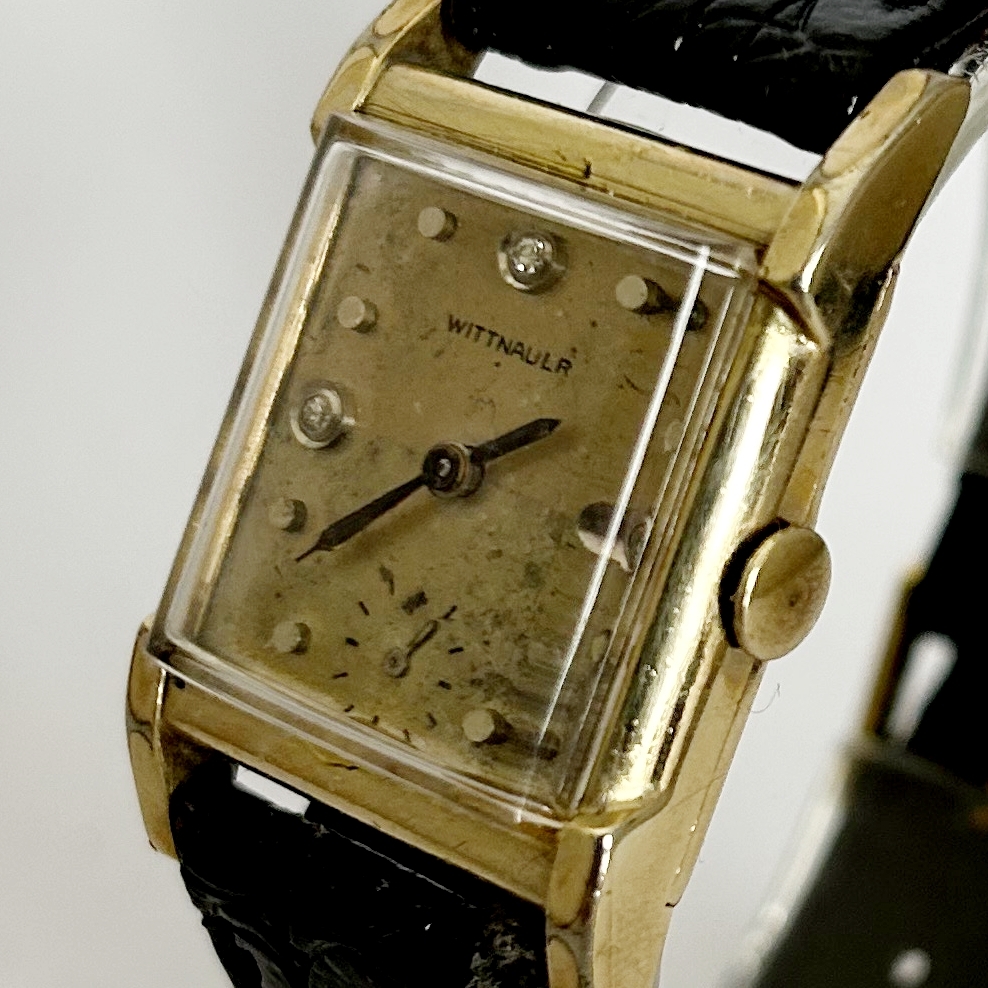 1950年代】Wittnauer ウィットナー アンティーク メンズ腕時計 スモセコ タンクタイプ 金貼ボディー 機械式手巻き