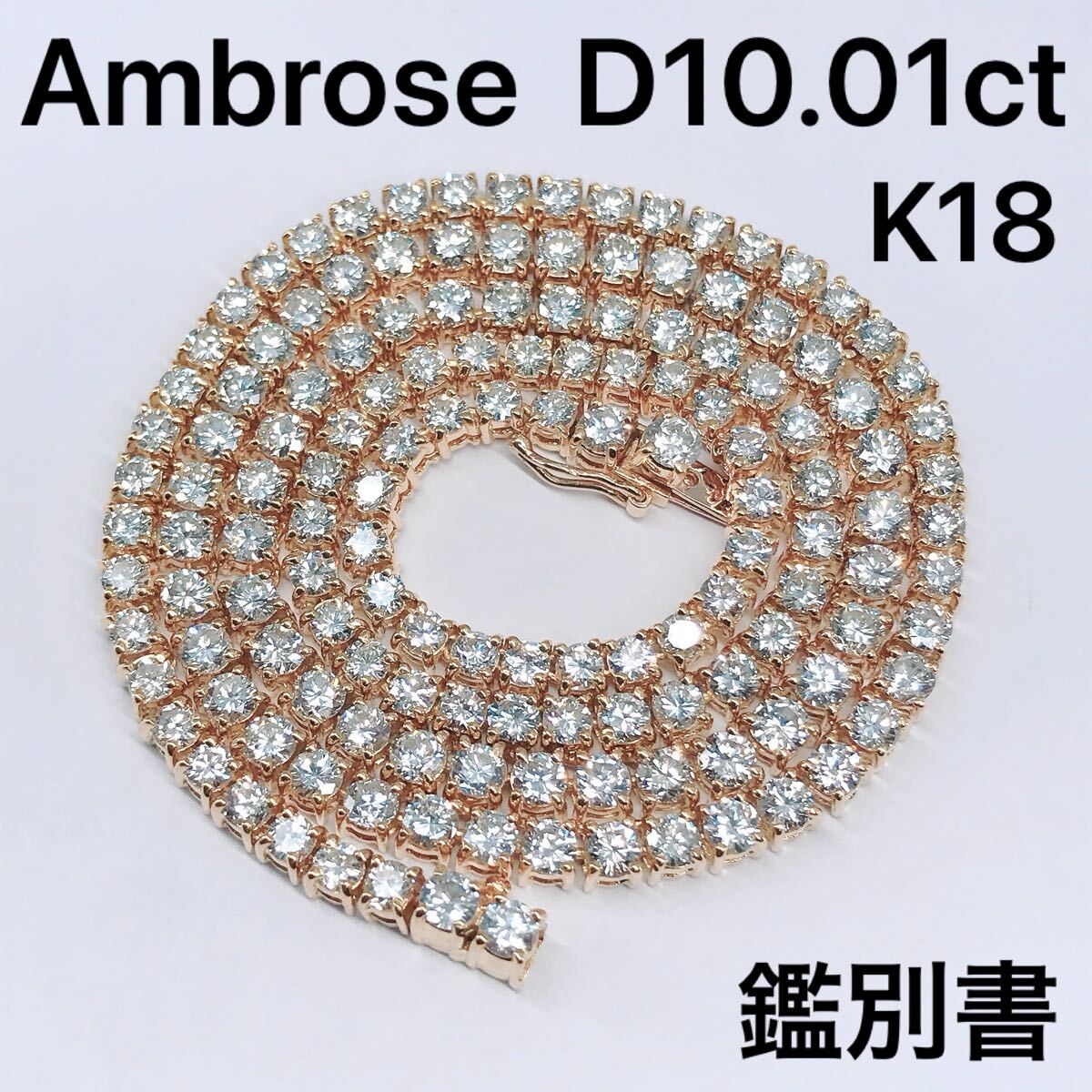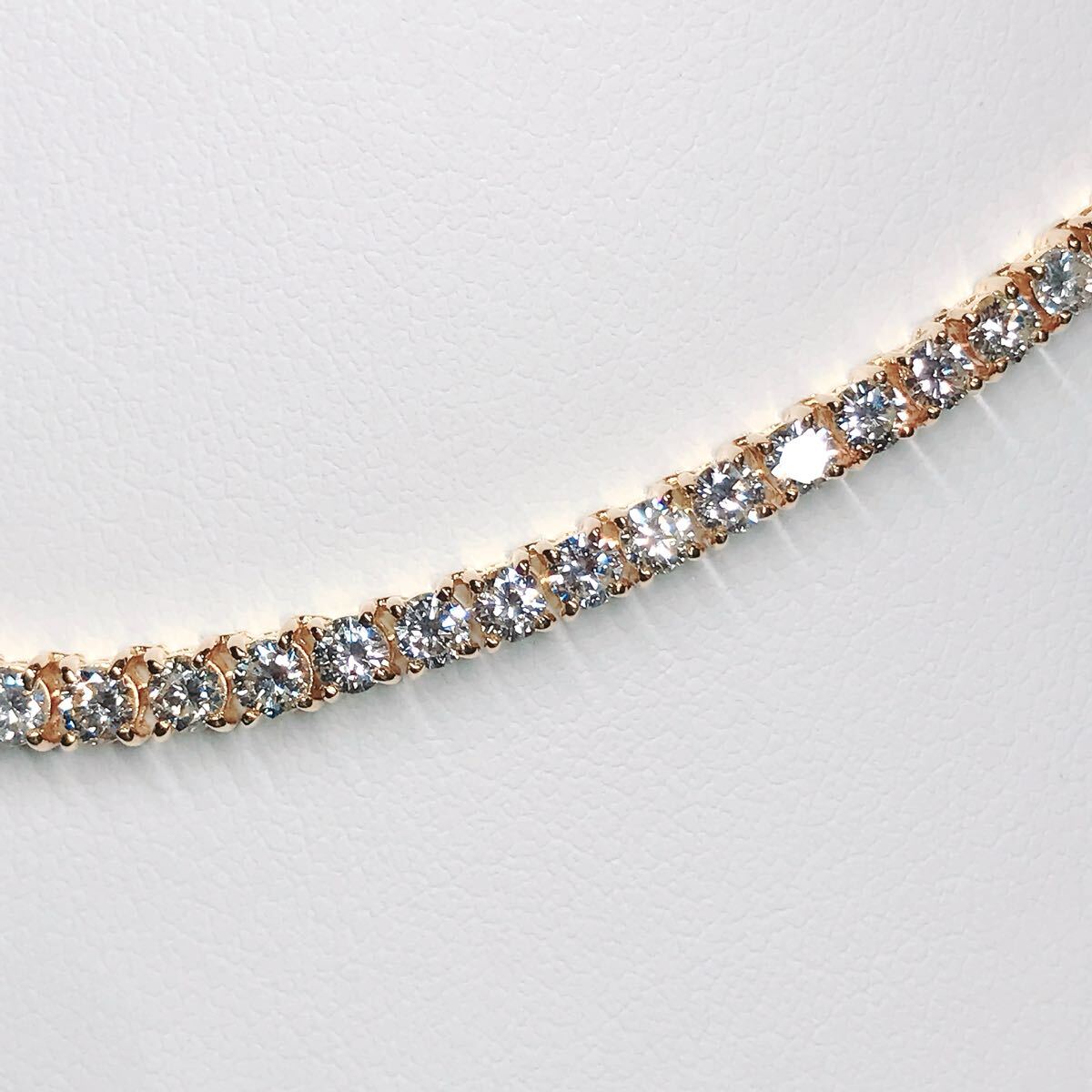 透明感あるテリの良い天然ダイヤモンドを144石、合計10ctアップセッティングした非常に豪華でボリューム感のあるアンブローズのテニスネックレスです。1石平均約0.07ctとなっており、わずかではありますが首元からセンターにかけて大きくなるグラデーションとなっております。