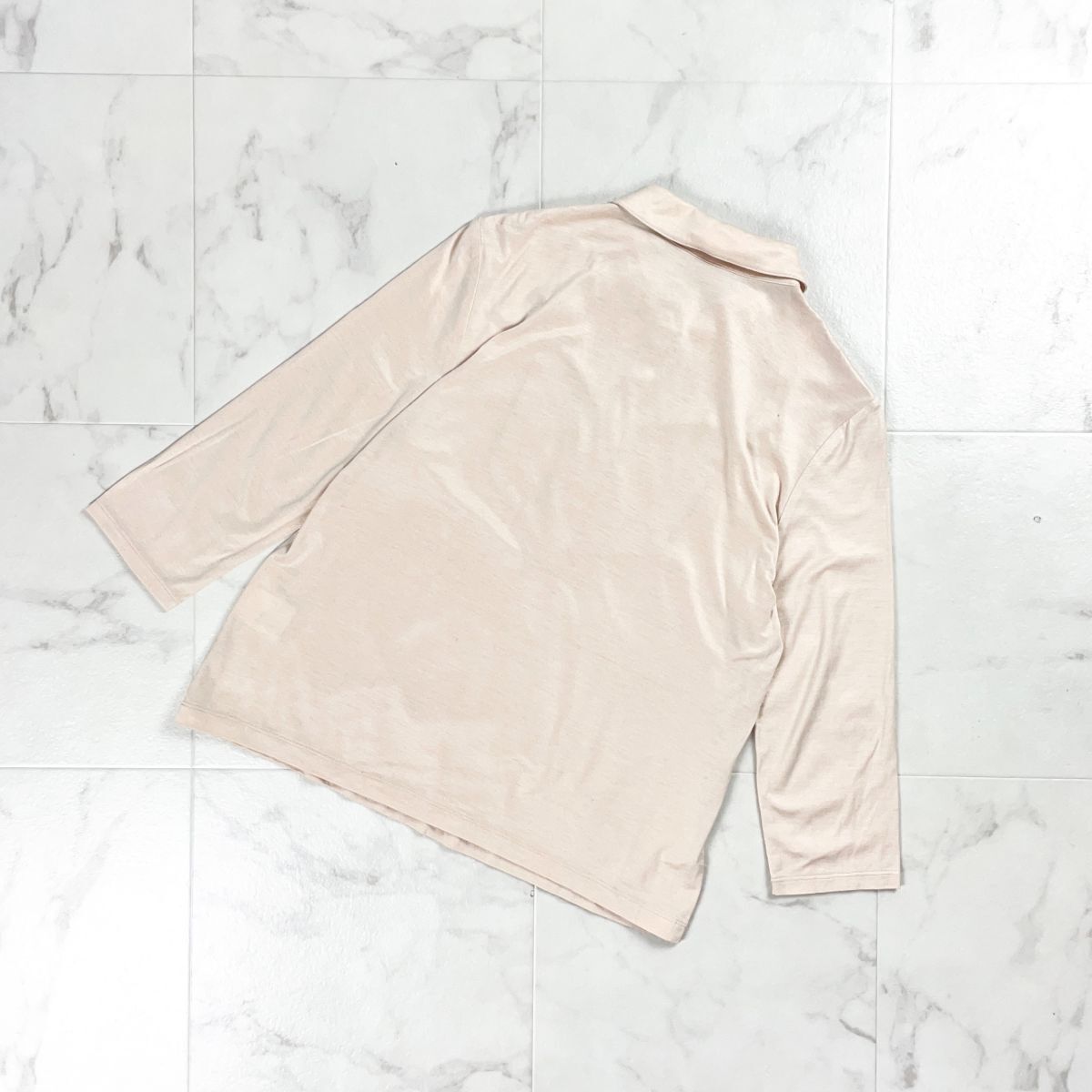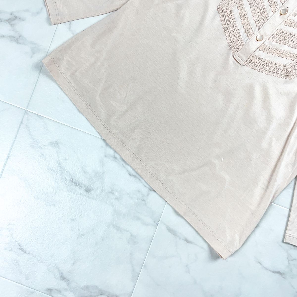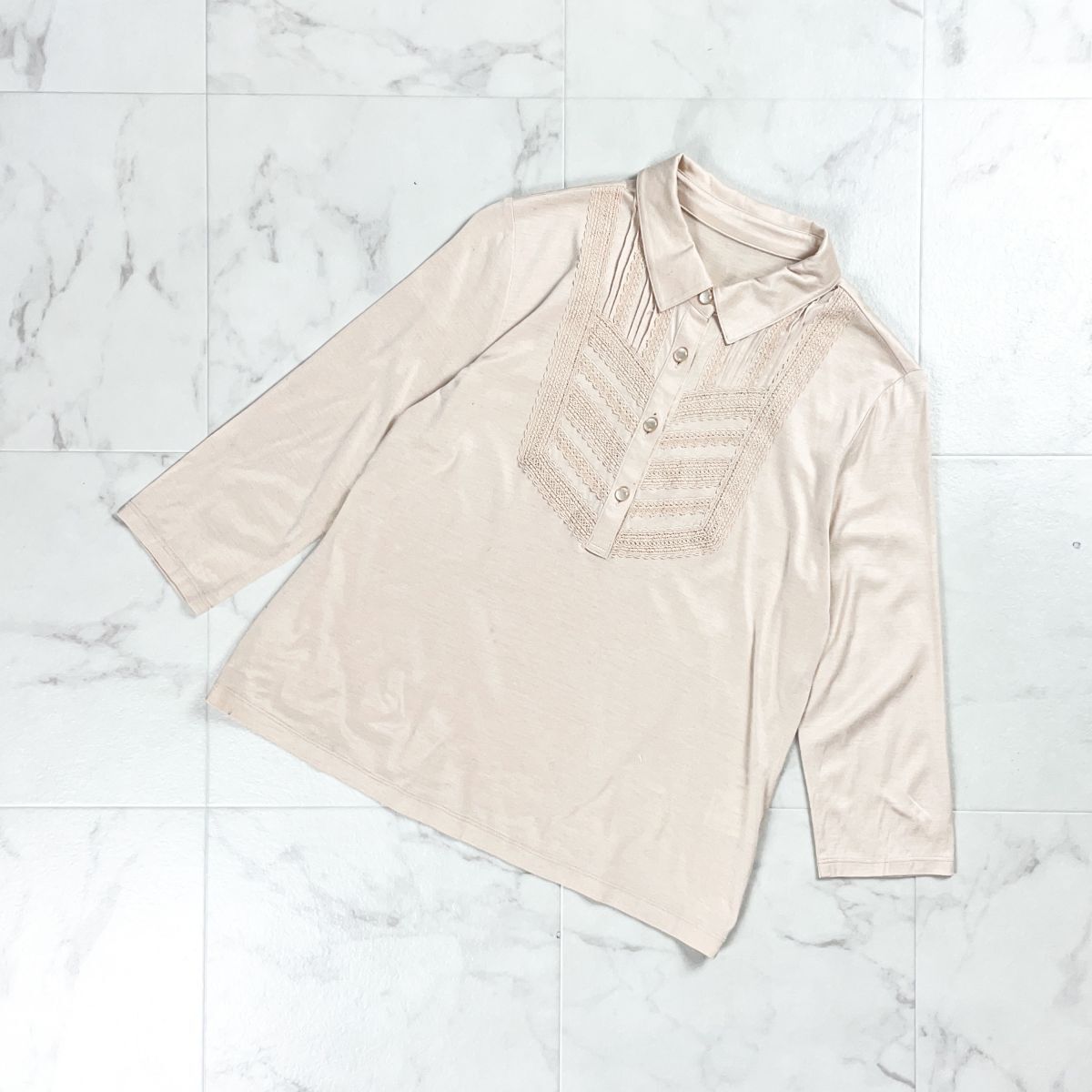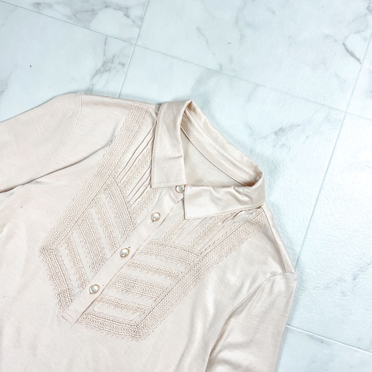 ROCHAS ロシャス レースデザインニットポロシャツ 七分袖ブラウス コットン レディース ピンク サイズ11*BD334