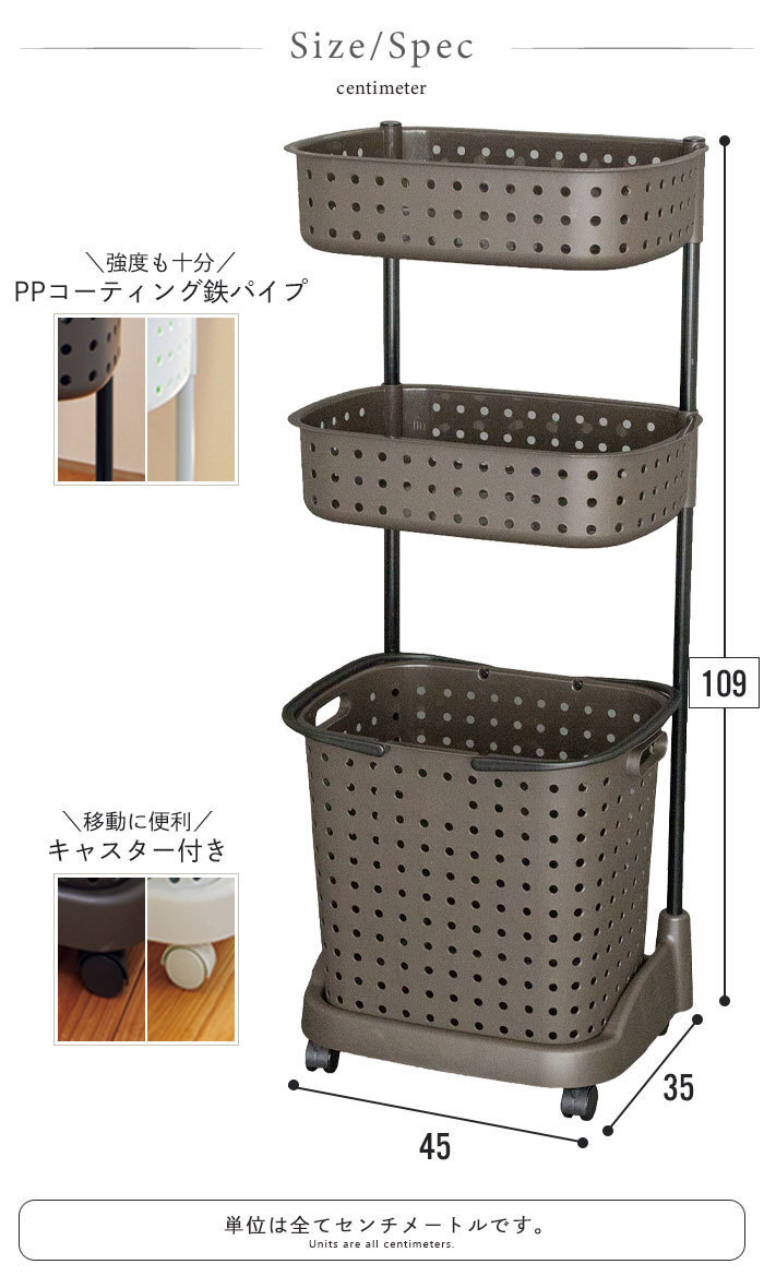 商品名 | ランドリーバスケット 3段 脱衣かご ラック脱衣所 収納 ランドリーラック ランドリー カゴ かご スリム ホワイト M5-MGKEA1517WH |