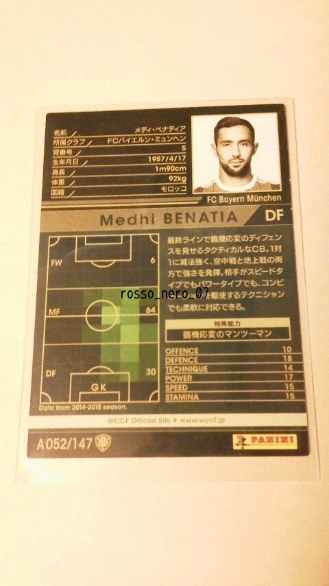 ☆WCCF2014-2015☆14-15OE☆A052☆黒☆メディ・ベナティア☆FCバイエルン・ミュンヘン☆Medhi Benatia☆FC Bayern Munchen☆