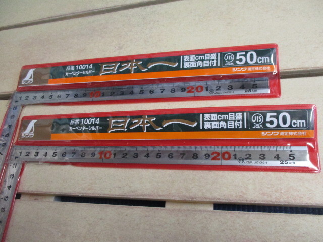 曲尺 指金 50cm  カーペンターシルバー メーカー シンワ   表面センチ目盛り、裏面角目付 2ケで¥5500