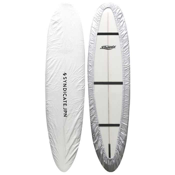ボードの重ね積みや車内保管時にワックス落ちを防ぐカバー。間口が全面ゴム入りなのでシャンプーハットの用に被せるだけ。 8'0"~10'0位のボードにフィットするフリーサイズ。