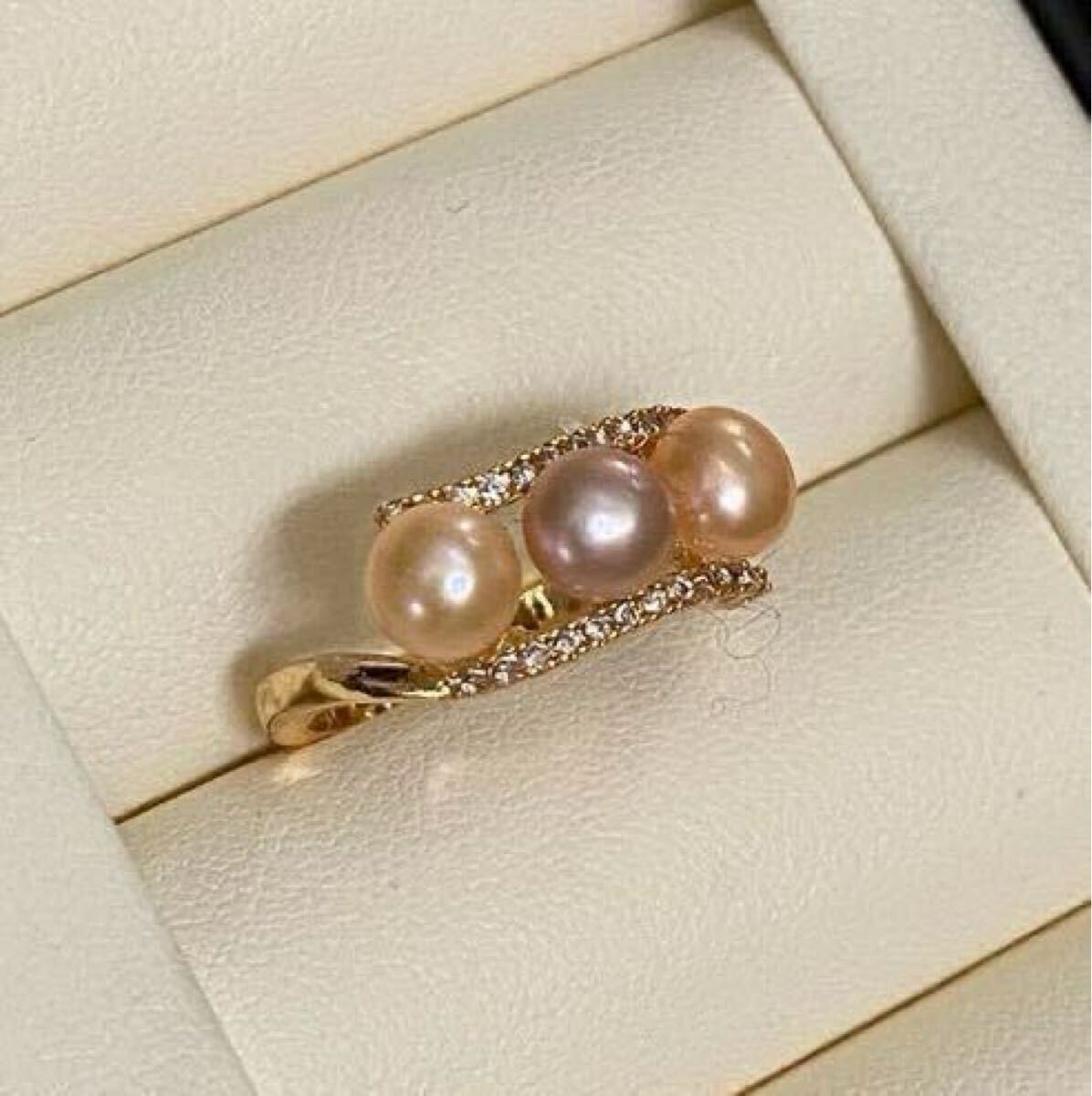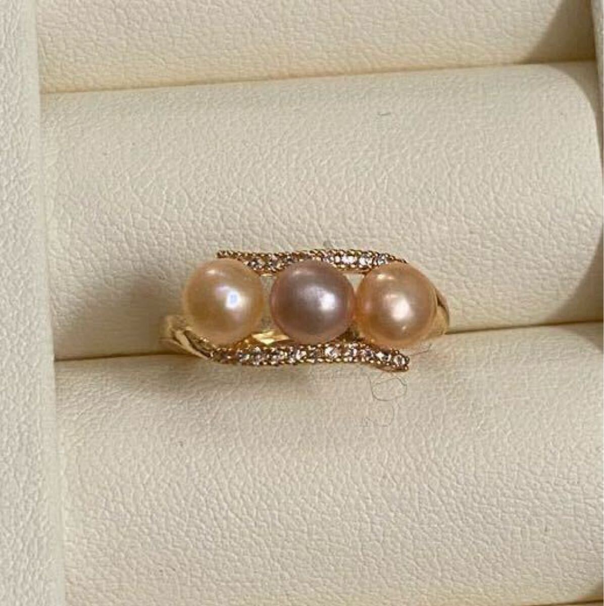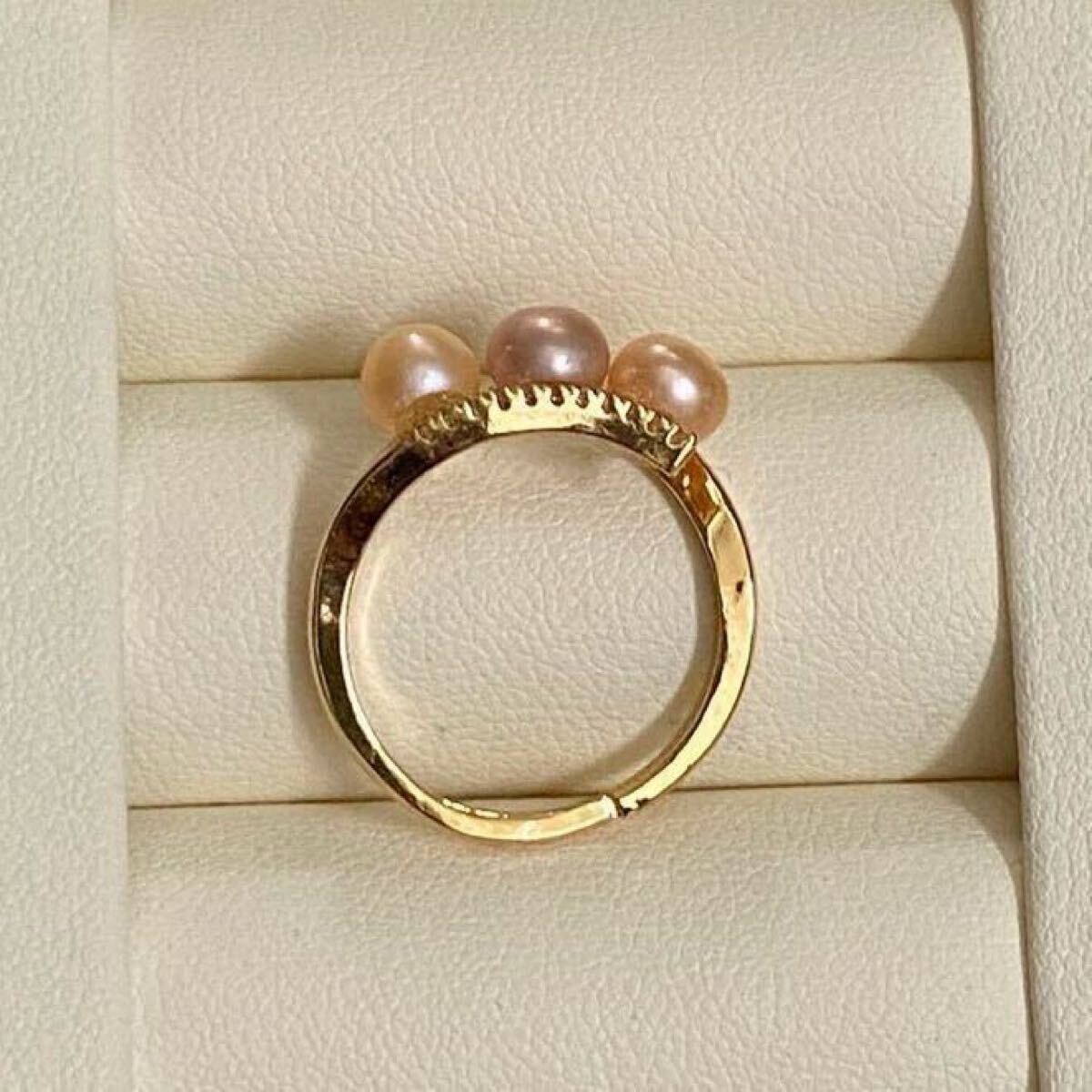 照り良く ベビーパール 真珠 フリーサイズリング 調整可能 ホワイト CZ付き