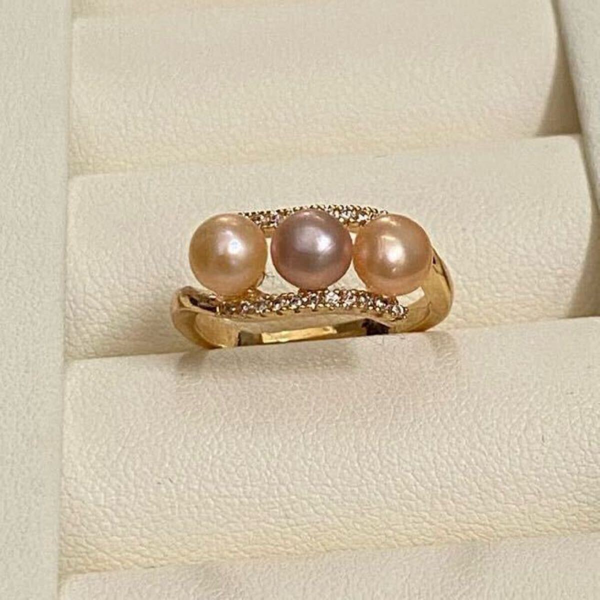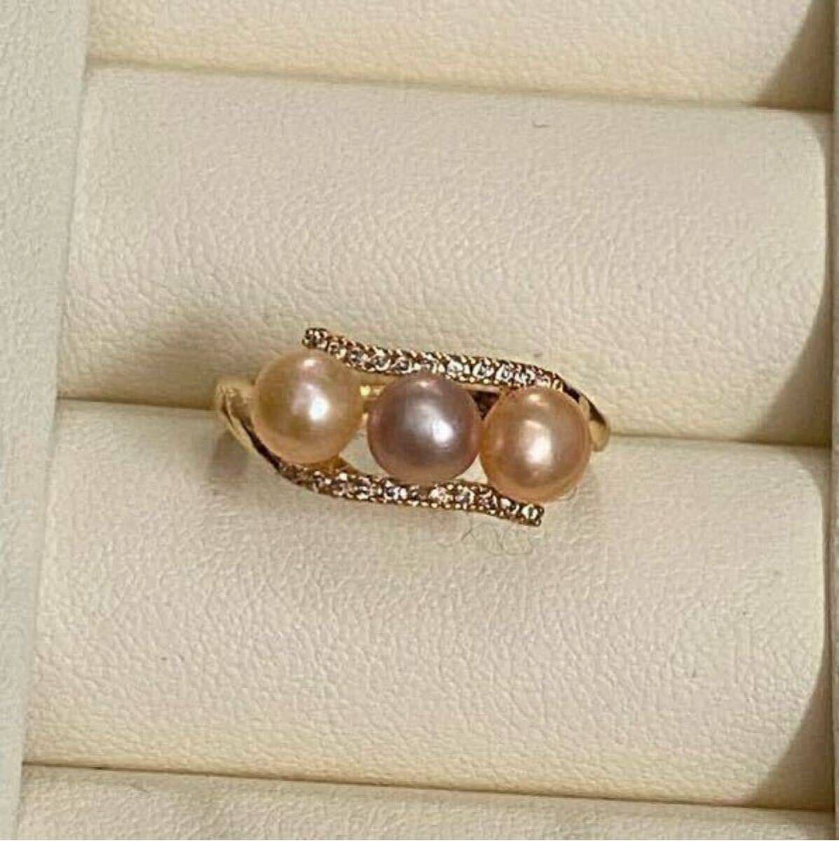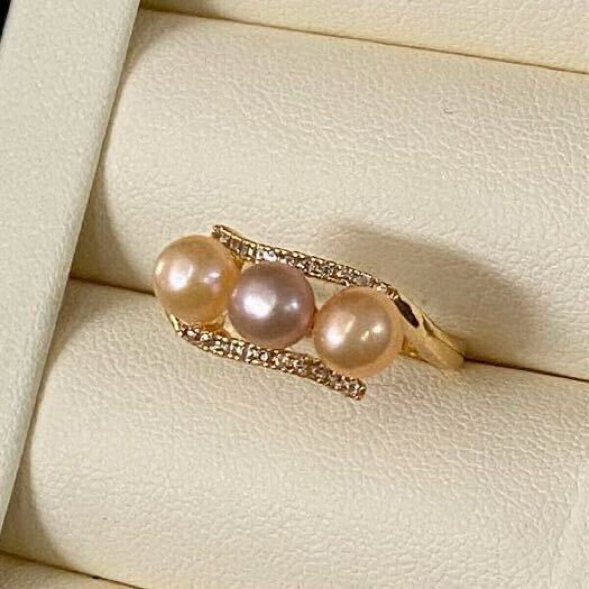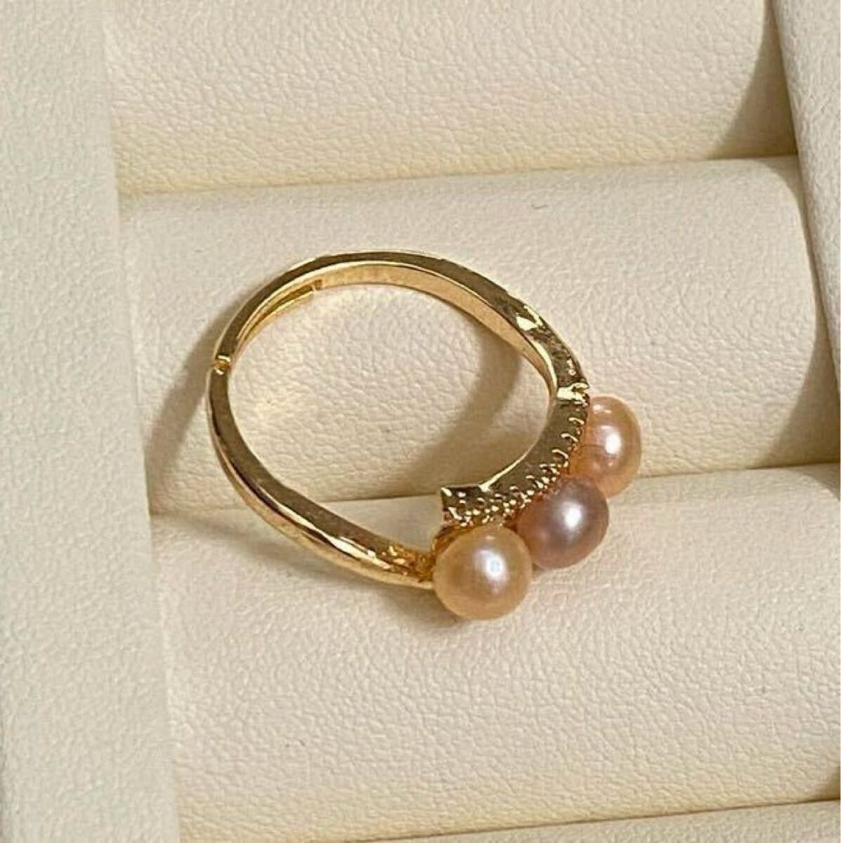 照り良く ベビーパール 真珠 フリーサイズリング 調整可能 ホワイト CZ付き