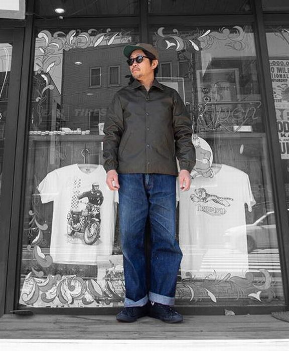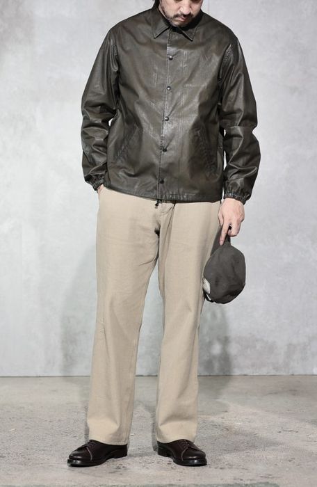 レザーのような鈍い光沢は、ナイロンより重厚感のあるルックス。その反面、着心地はコーチジャケットらしい軽さで