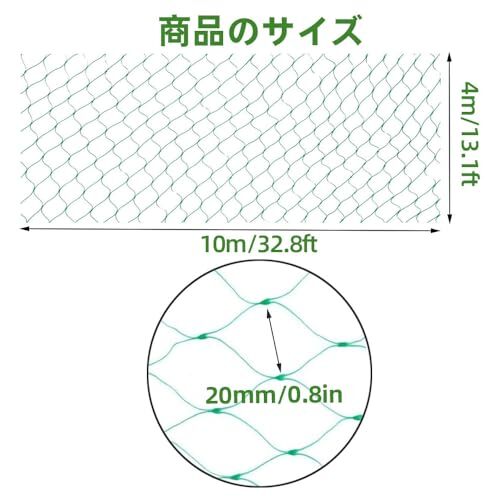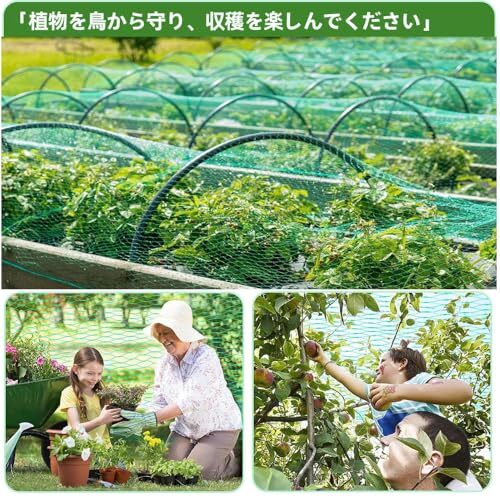 野菜や果樹を育てる際には、鳥や鹿などの動物からの被害が心配ですが、この優しい園芸用ネットを使用することで、しっかりと植物を保護しつつ、光合成に必要な光を妨げることがありません。つまり、大切な作物を安全に守ると同時に、自然な成長をアシストしてくれる非常に便利なアイテムです。使い方も簡単で、開けて植物を覆うだけで手軽に設置できるため、初心者の方でも安心してご使用いただけます。