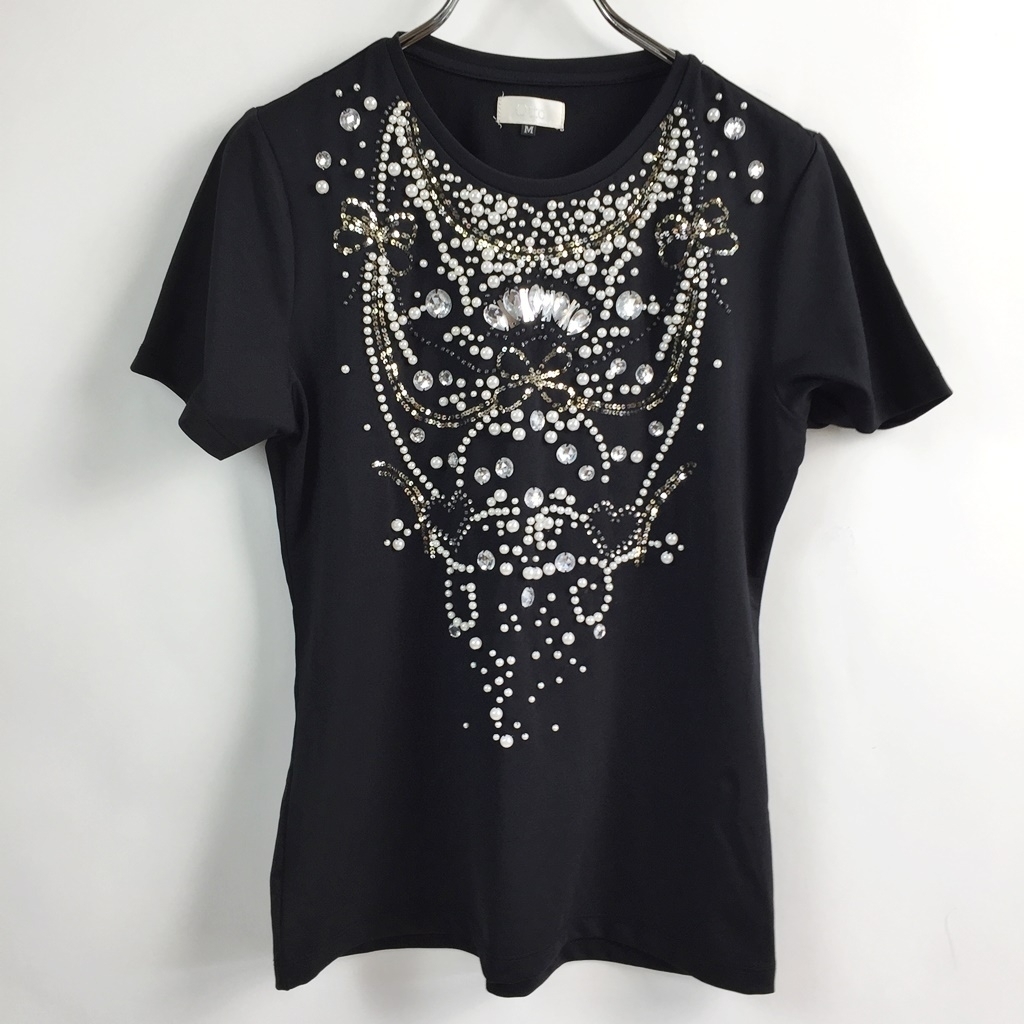 商品: デザイン古着★Otto 半袖Tシャツ ストレッチ素材 ビーズ スパンコール ブラック サイズM レディース