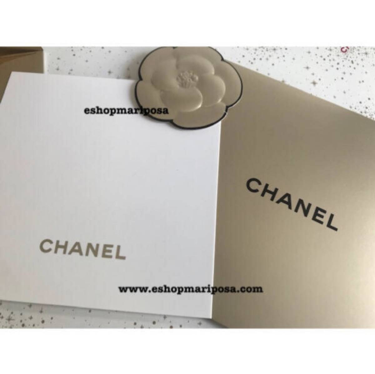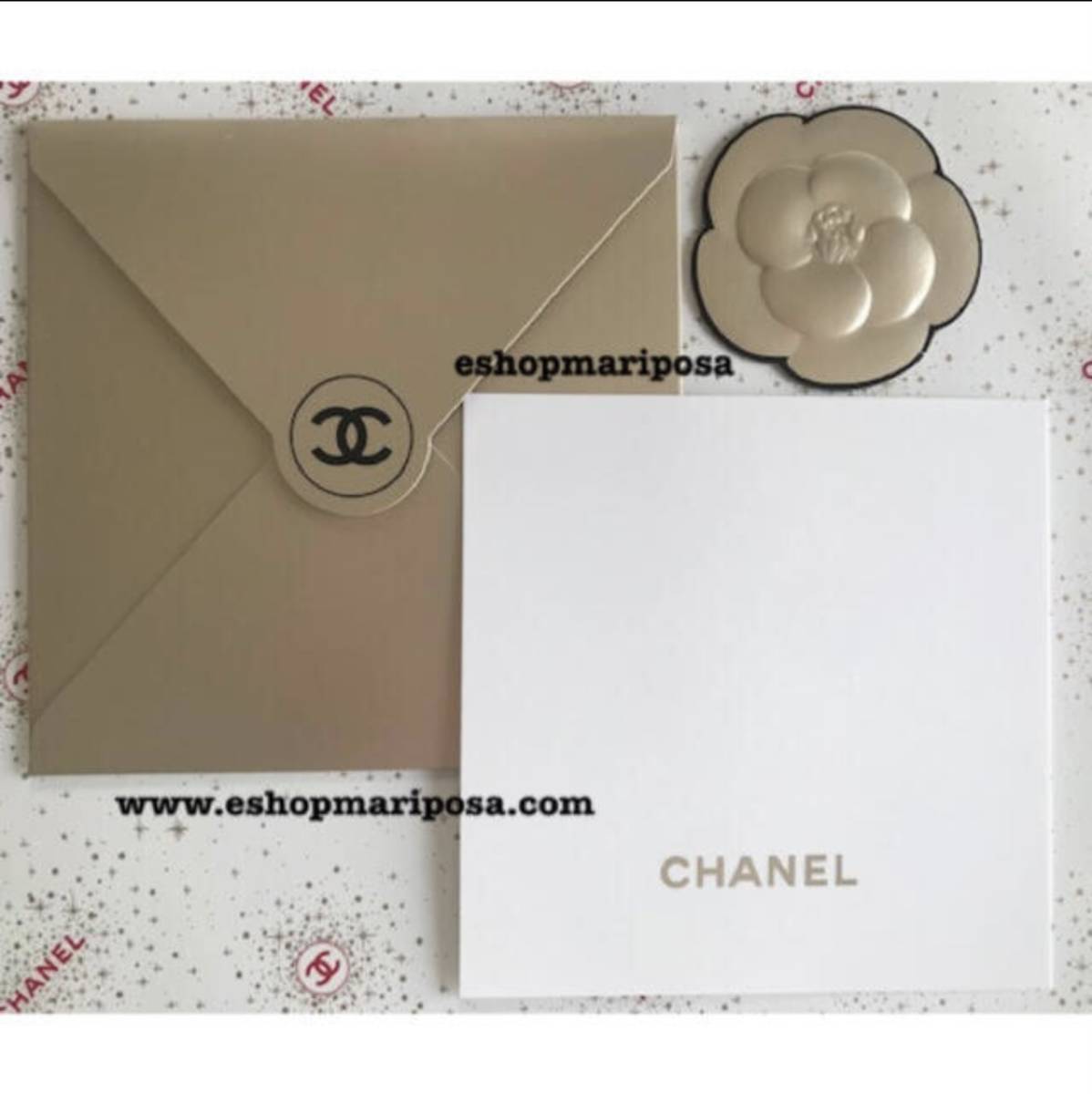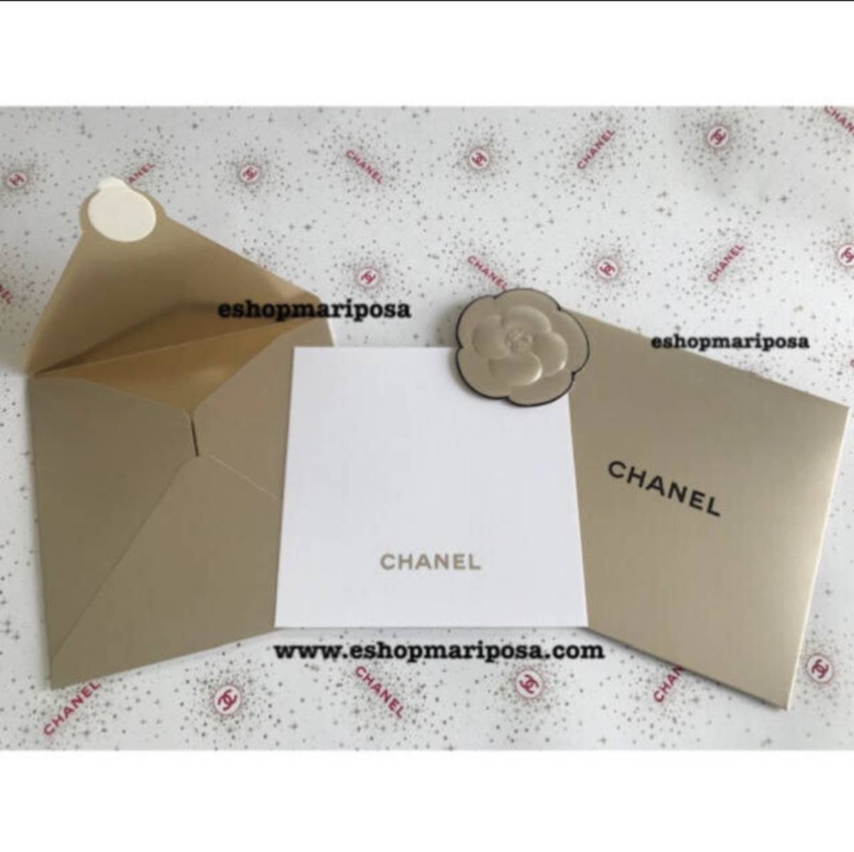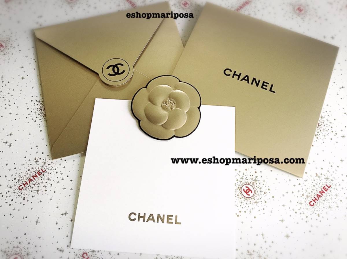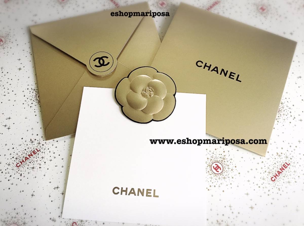 シャネル 封筒 +メッセージカードセット+カメリアシール 金色 ゴールド ココマーク CHANELロゴ入り ラッピングリボンや包装紙と一緒に