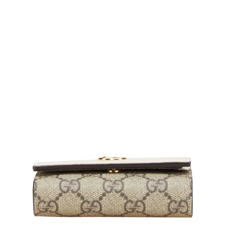グッチ GGスプリーム ダブルG ミディアム ウォレット 二つ折り財布 598587 ベージュ ホワイト PVC レザー レディース GUCCI 【中古】