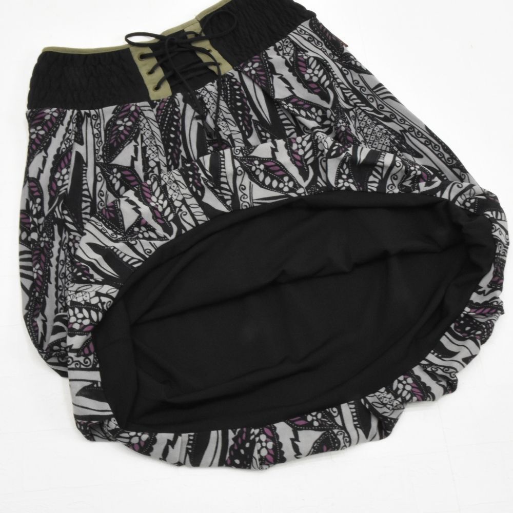 ウエスト編み上げ、すそバルーン、総裏地がはいったストレッチチュール系のスカートです。