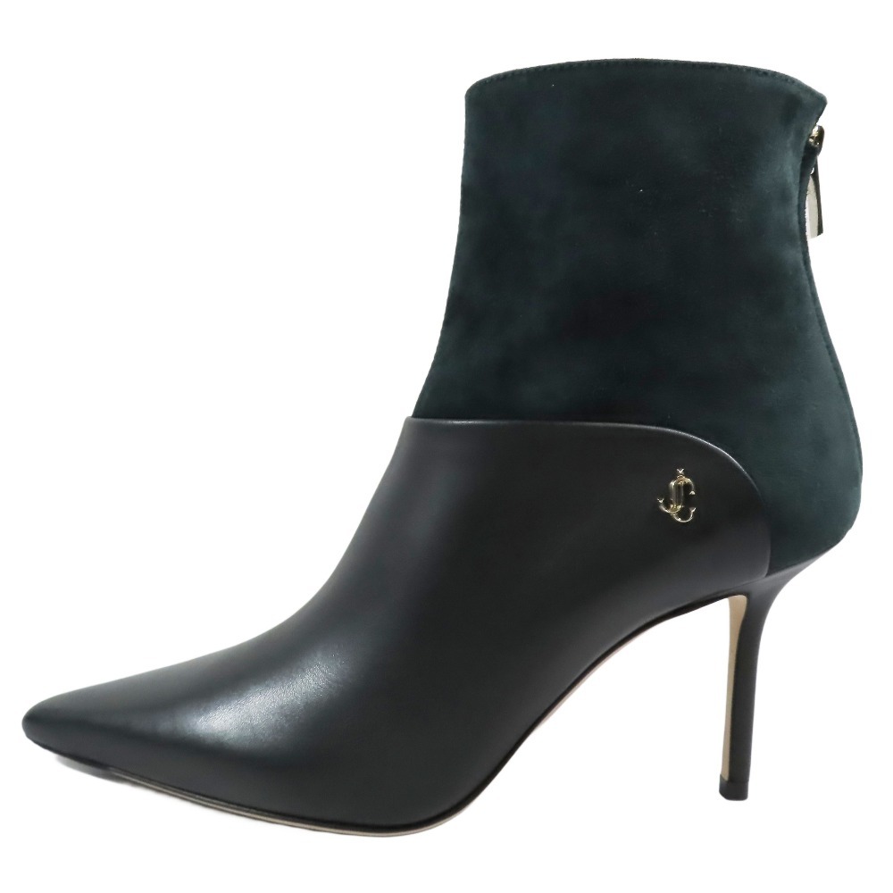 商品名:JIMMY CHOO ジミーチュウ BEYLA 85 ショートブーツ ハイヒール ポインテッドトゥ スエード レザー シューズ 37.5 ダークグリーン