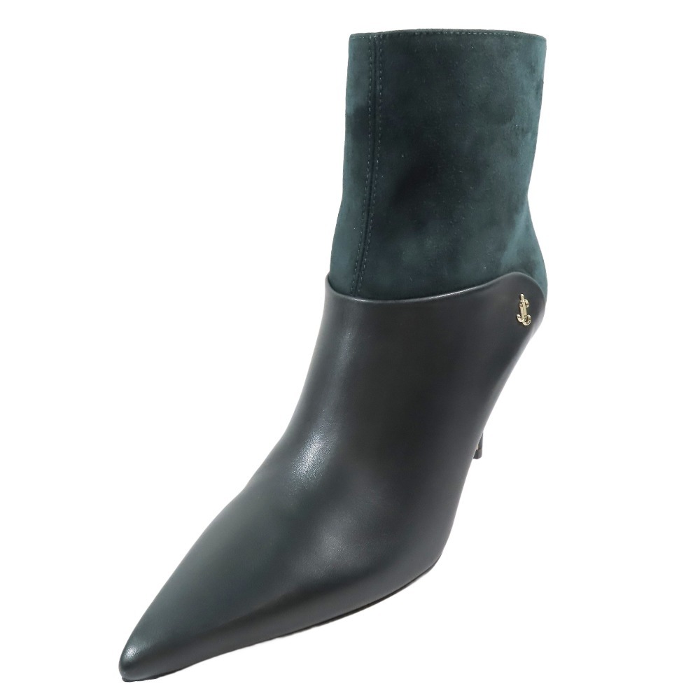 未使用 JIMMY CHOO ジミーチュウ BEYLA 85 ショートブーツ ハイヒール ポインテッドトゥ スエード レザー シューズ 37.5 ダークグリーン