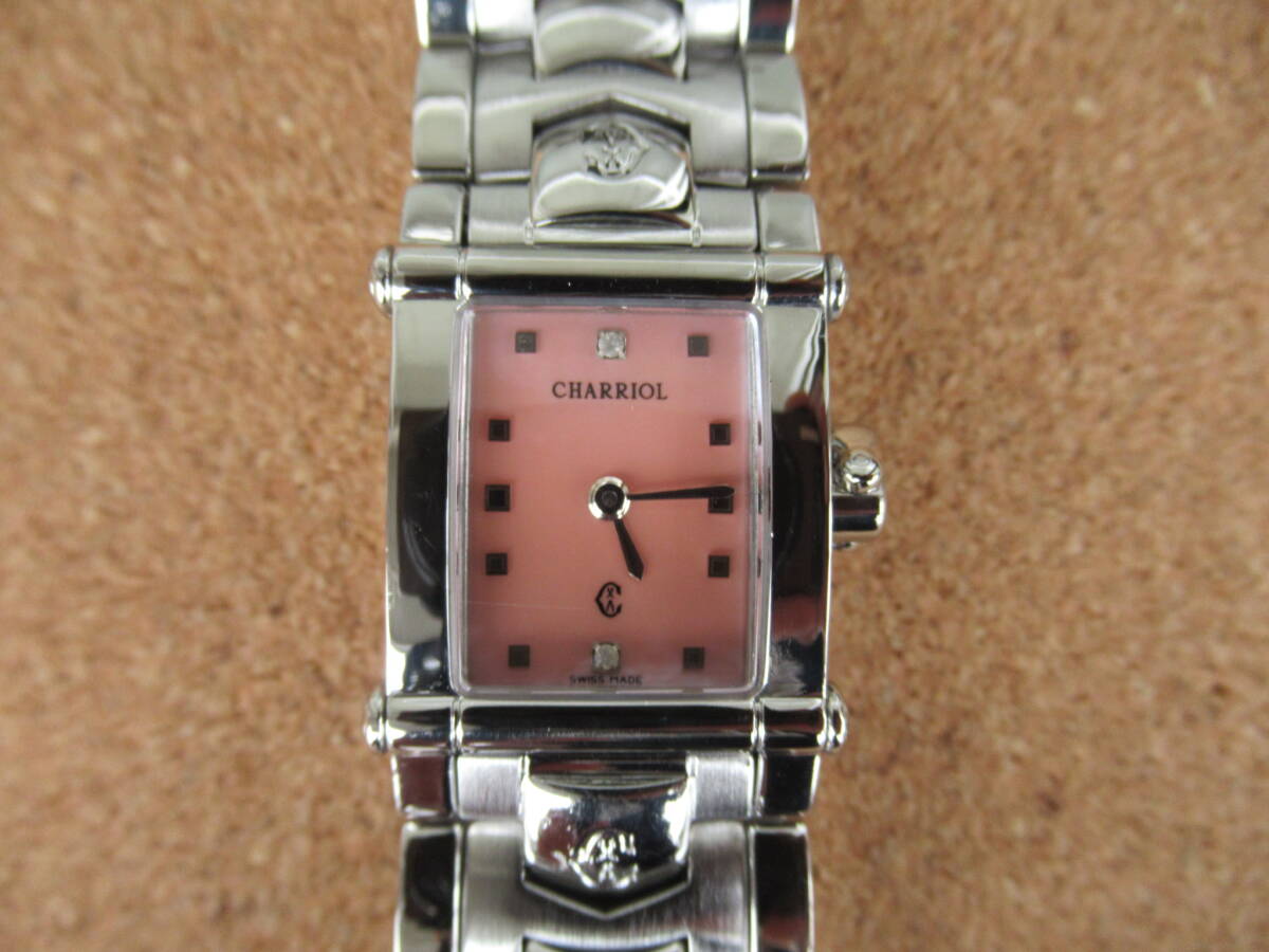 フィリップシャリオール レディース Ref.CCSTRM 2Pダイヤ入りピンクシェル文字盤 外装リフレッシュ済みの美品 稼働品 激安 !!