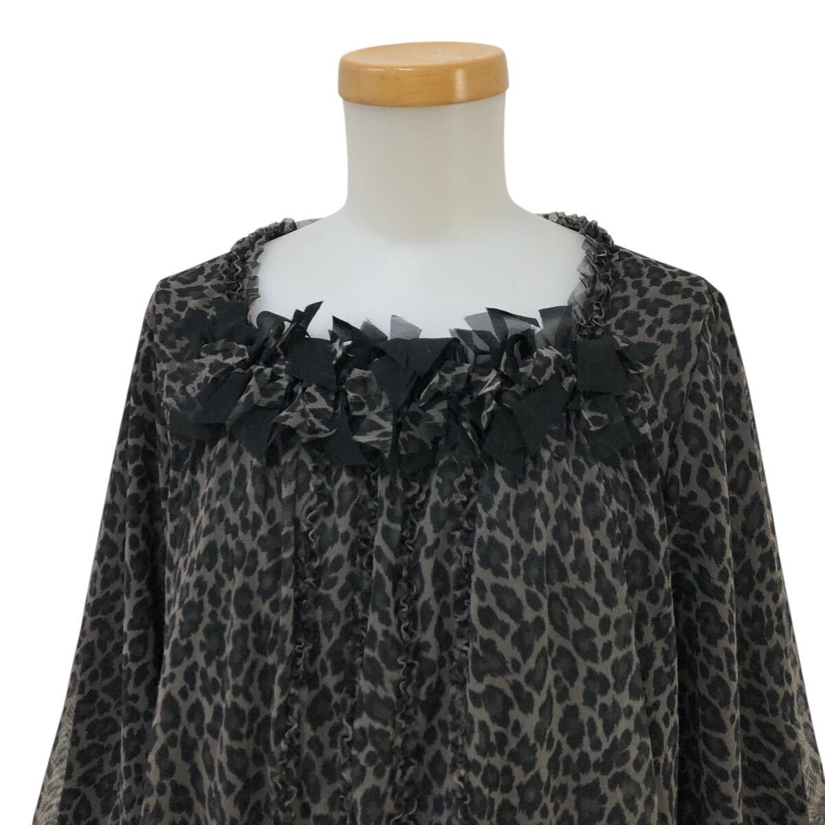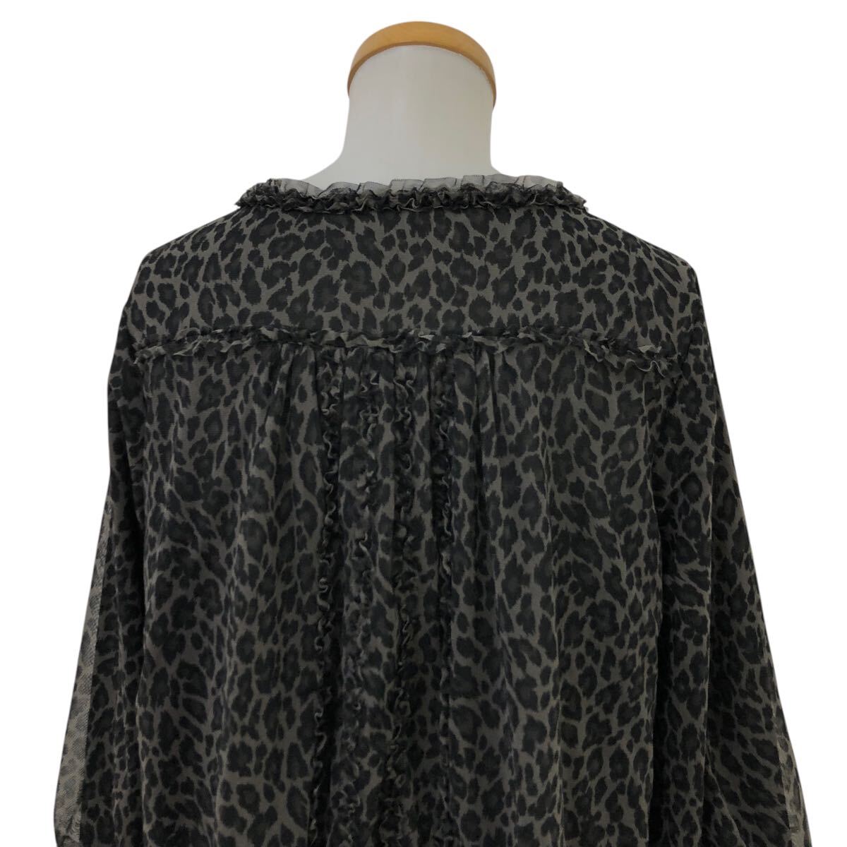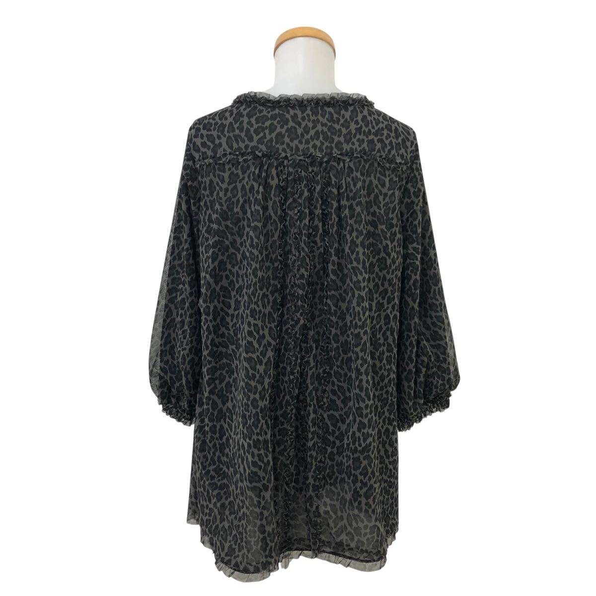 m620-73 INGEBORG インゲボルグ ヒョウ柄 フリル 七分袖 チュール メッシュ チュニック ブラウス シャツ トップス グレー系 レディース 9
