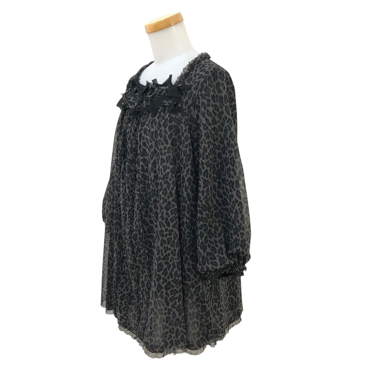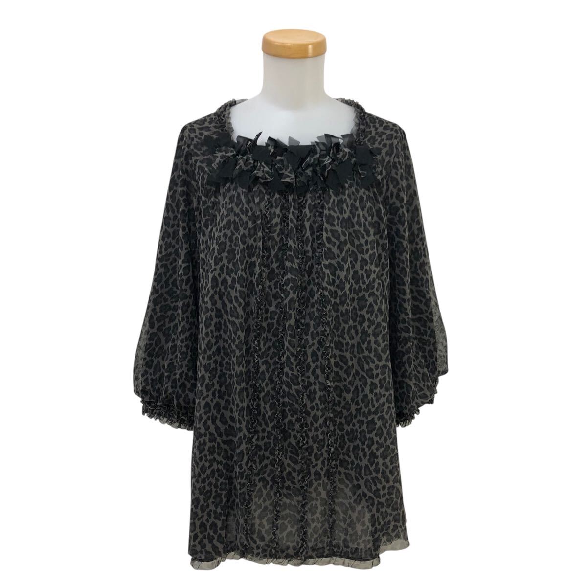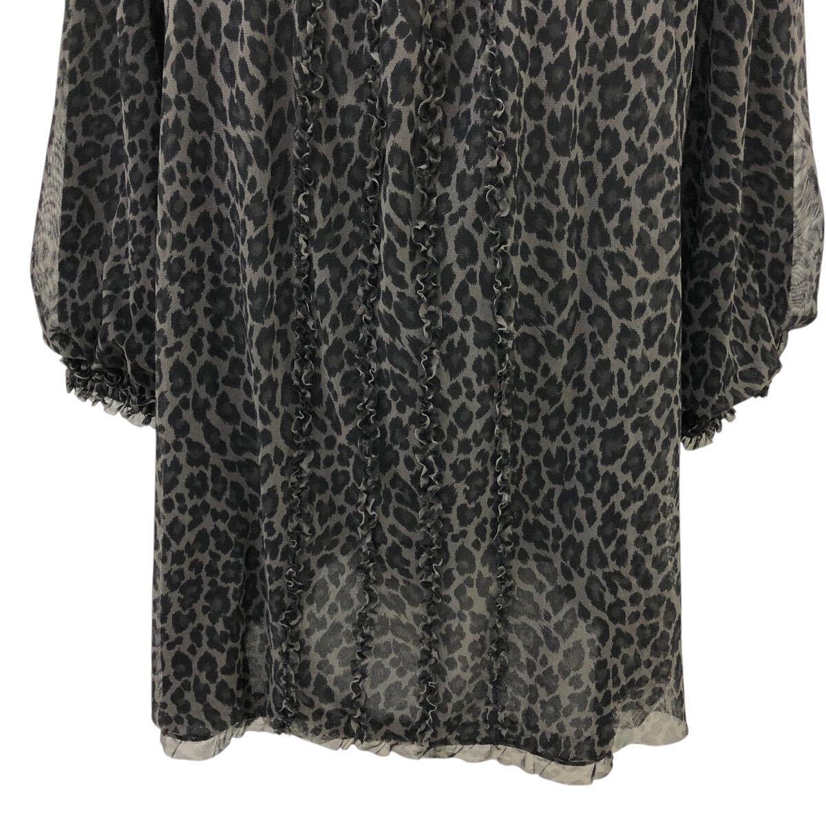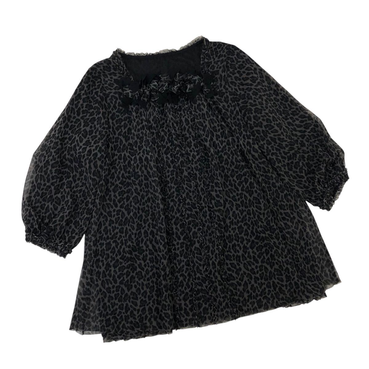m620-73 INGEBORG インゲボルグ ヒョウ柄 フリル 七分袖 チュール メッシュ チュニック ブラウス シャツ トップス グレー系 レディース 9