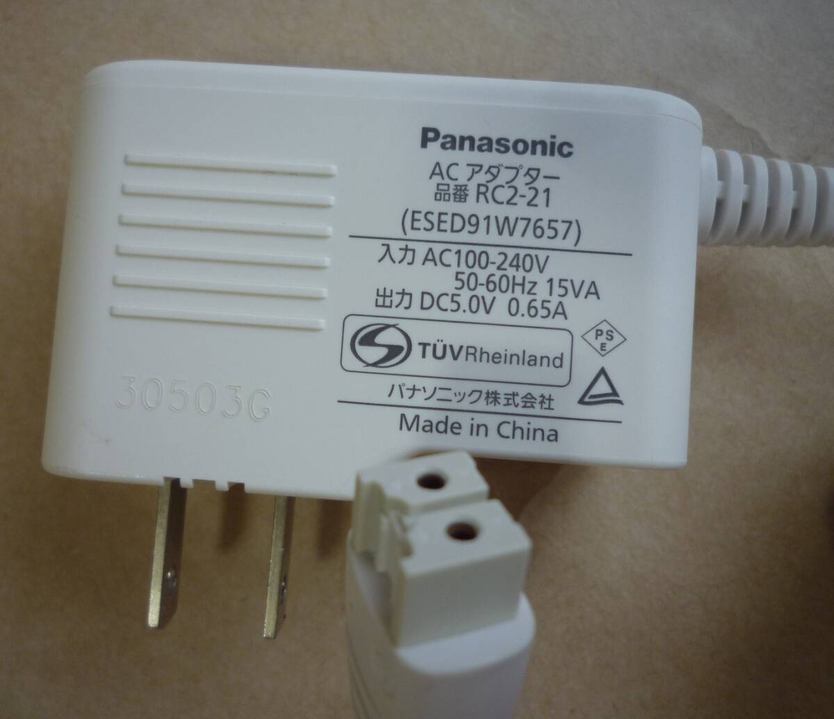 美品 Panasonic パナソニック ACアダプター RC2-21 ESED91W7657 電源アダプター 5.0V 0.65A 白 ホワイト 美容機器 頭皮ブラシ