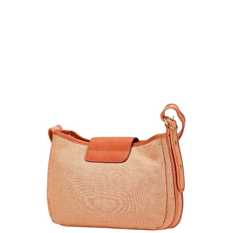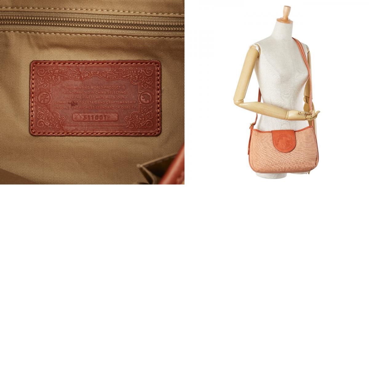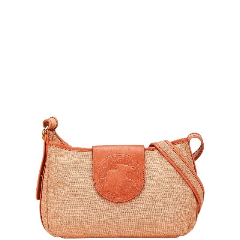 ハンティングワールド 斜め掛け ショルダーバッグ ピンク オレンジ キャンバス レザー レディース HUNTING WORLD 【中古】