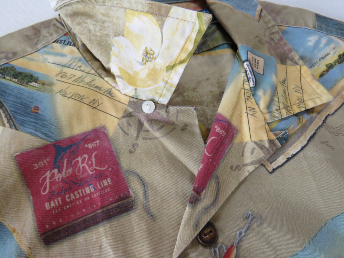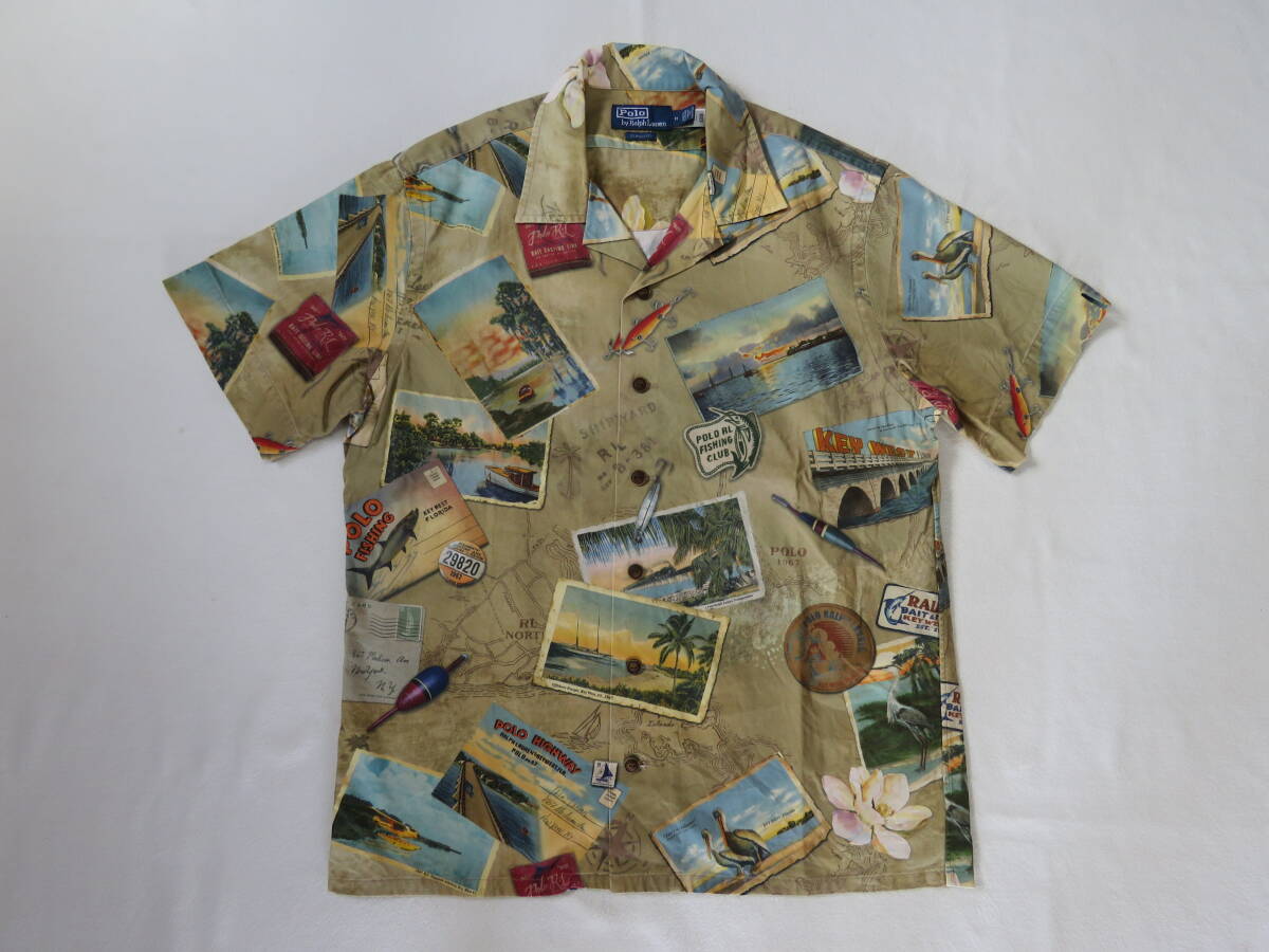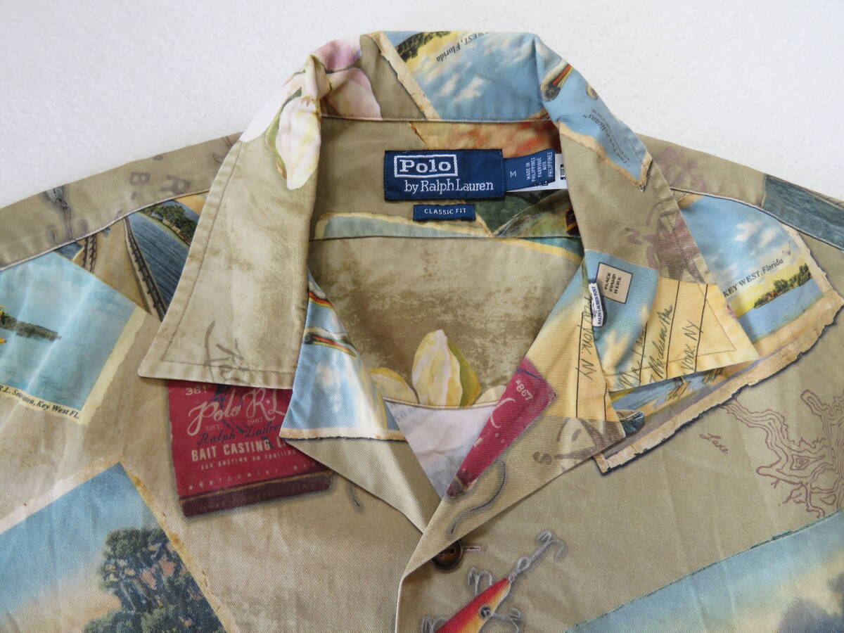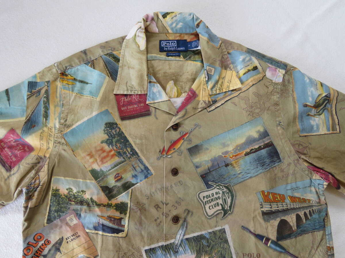 ポロ ラルフローレン オープンカラーシャツ コットン フィッシング フォト 総柄 半袖 開襟 CLASSIC FIT Polo Ralph Lauren M